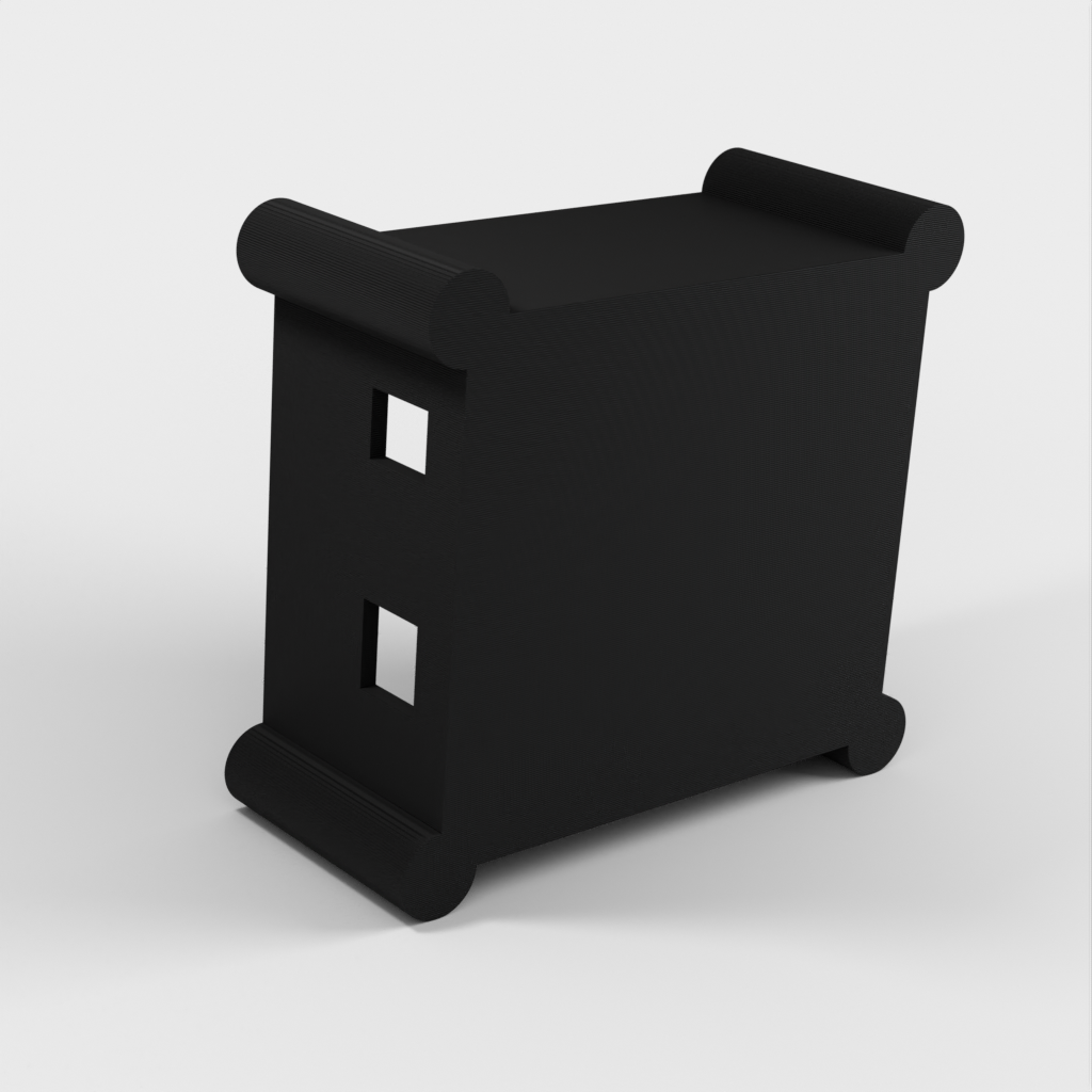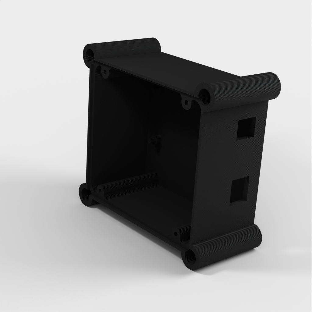 Arduino Uno -projektilaatikko, joka on suunniteltu Arduino Unolle ja kilvelle (tai kahdelle, paksuudesta riippuen). Kuvassa on versio, jossa on alumiinikansi, mutta mukana on painettu kansi, jos et tarvitse lämmön johtamista pois.