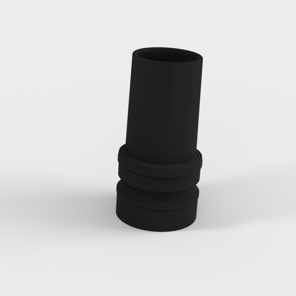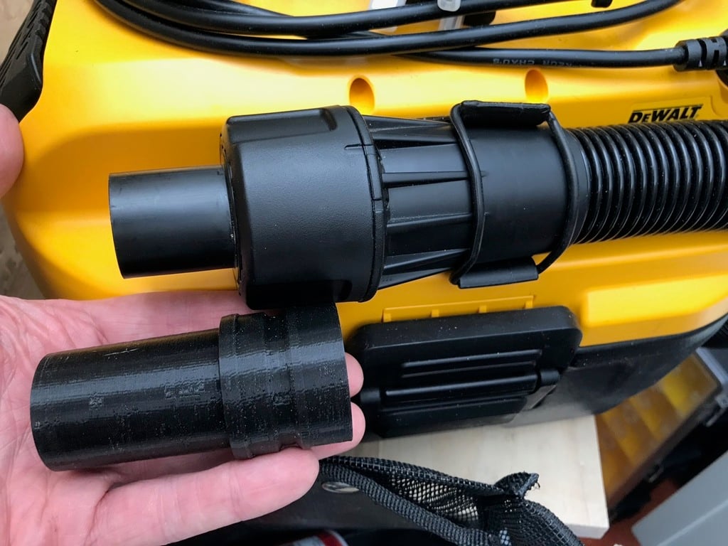 Adapteri DeWalt Airlockista 35 mm:iin. Tämä tuote on suunniteltu yhdistämään DeWalt DCV584L -imuri Festool-ohjainkiskon upotusahaasi. Vakio Airlock-sovitin päättyy 32 mm:n tappiin, joka vain helisee sahan 35 mm:n portissa, mutta tämä sovitin ratkaisee ongelman tehokkaasti.