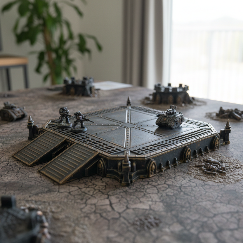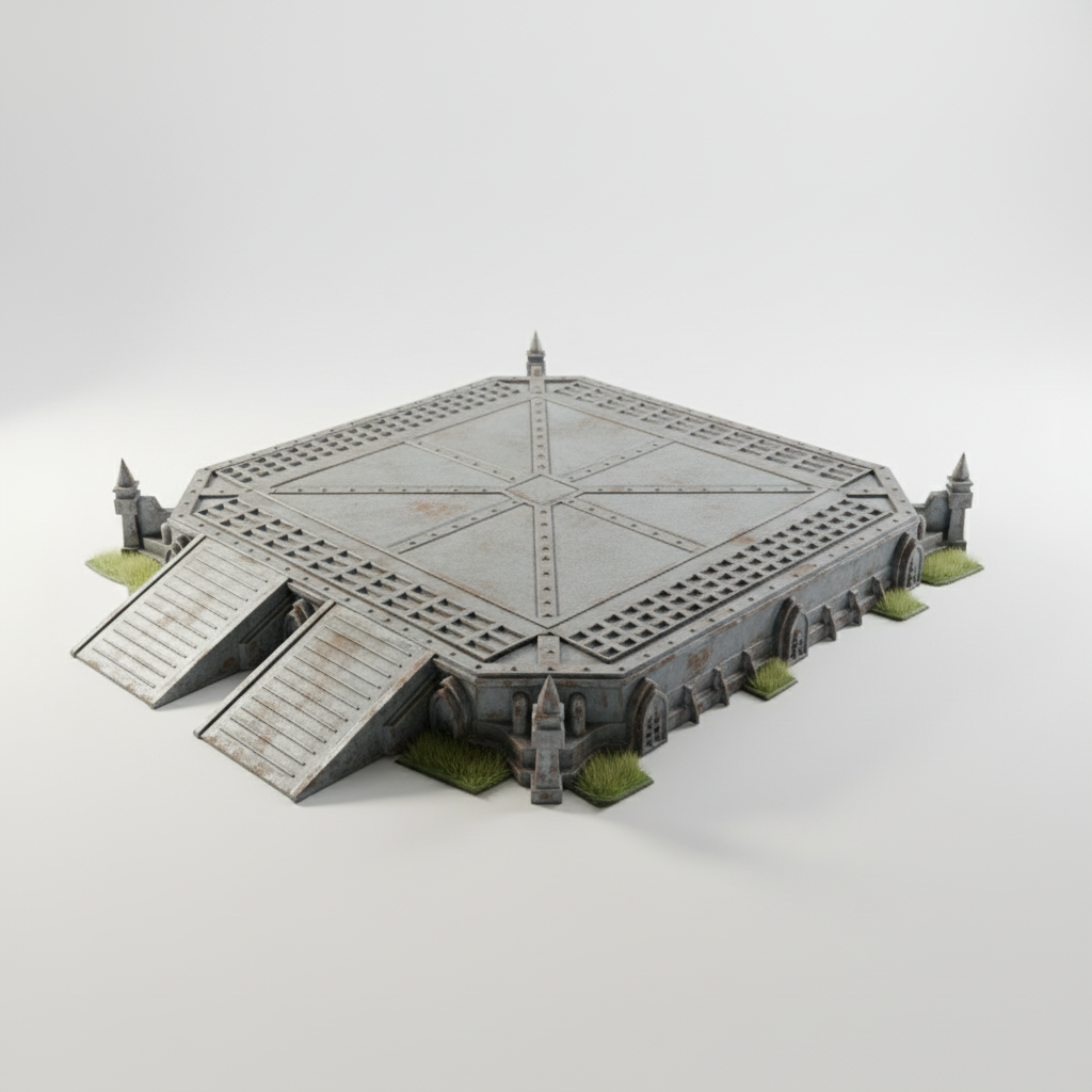 Denne 3D-printbare Landingsplads er et robust stykke Wargame Terræn, ideel som en strategisk bygning eller befæstning på din slagmark. Den passer perfekt til Warhammer 40k spil, hvor den tilføjer en detaljeret, dystopisk atmosfære til enhver kamp mellem Imperial forces, Chaos forces eller Xenos forces.
