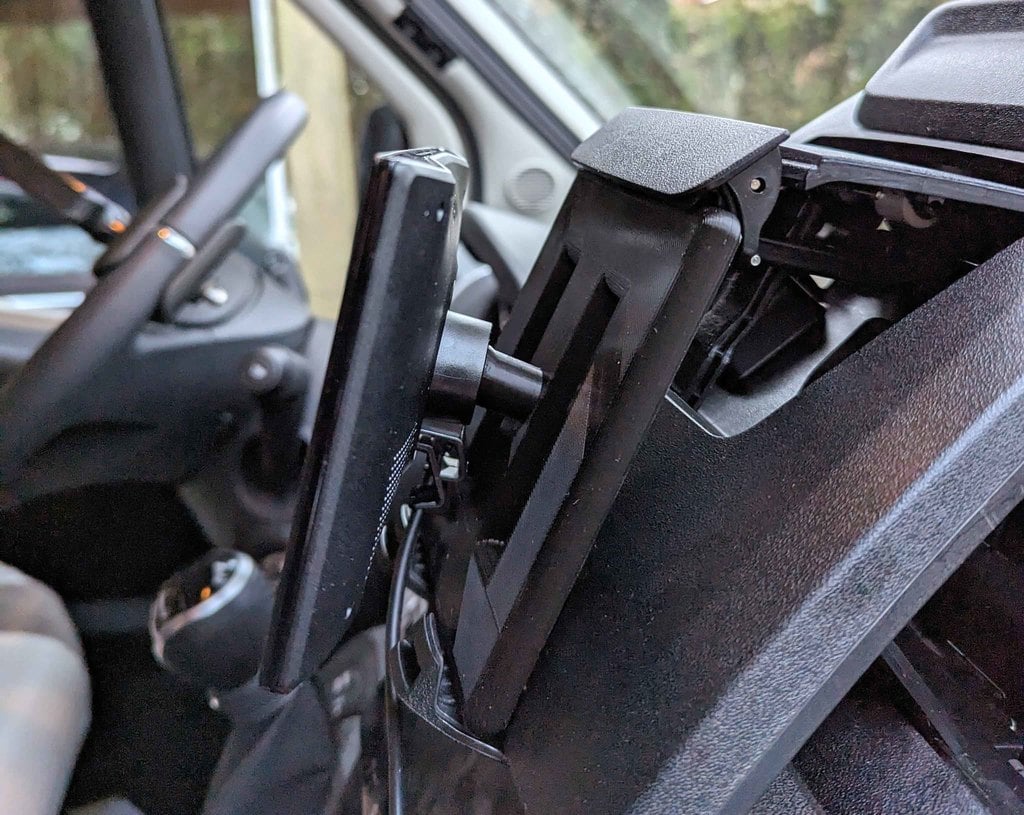 Tämän sovittimen avulla voit helposti asentaa Garmin-tiekarttalaitteet, kuten Garmin Campervanin, älypuhelintelineeseen Fiat Ducatossasi. Näin voit helpommin sijoittaa navigaattorilaitteesi helposti ulottuville Fiat Ducato -pakettiautossasi ilman, että sinun tarvitsee kurkottaa sitä tuulilasiin. Nyt voit nauttia siitä, että navigaattorilaitteesi on sijoitettu optimaaliseen asentoon ajon aikana.