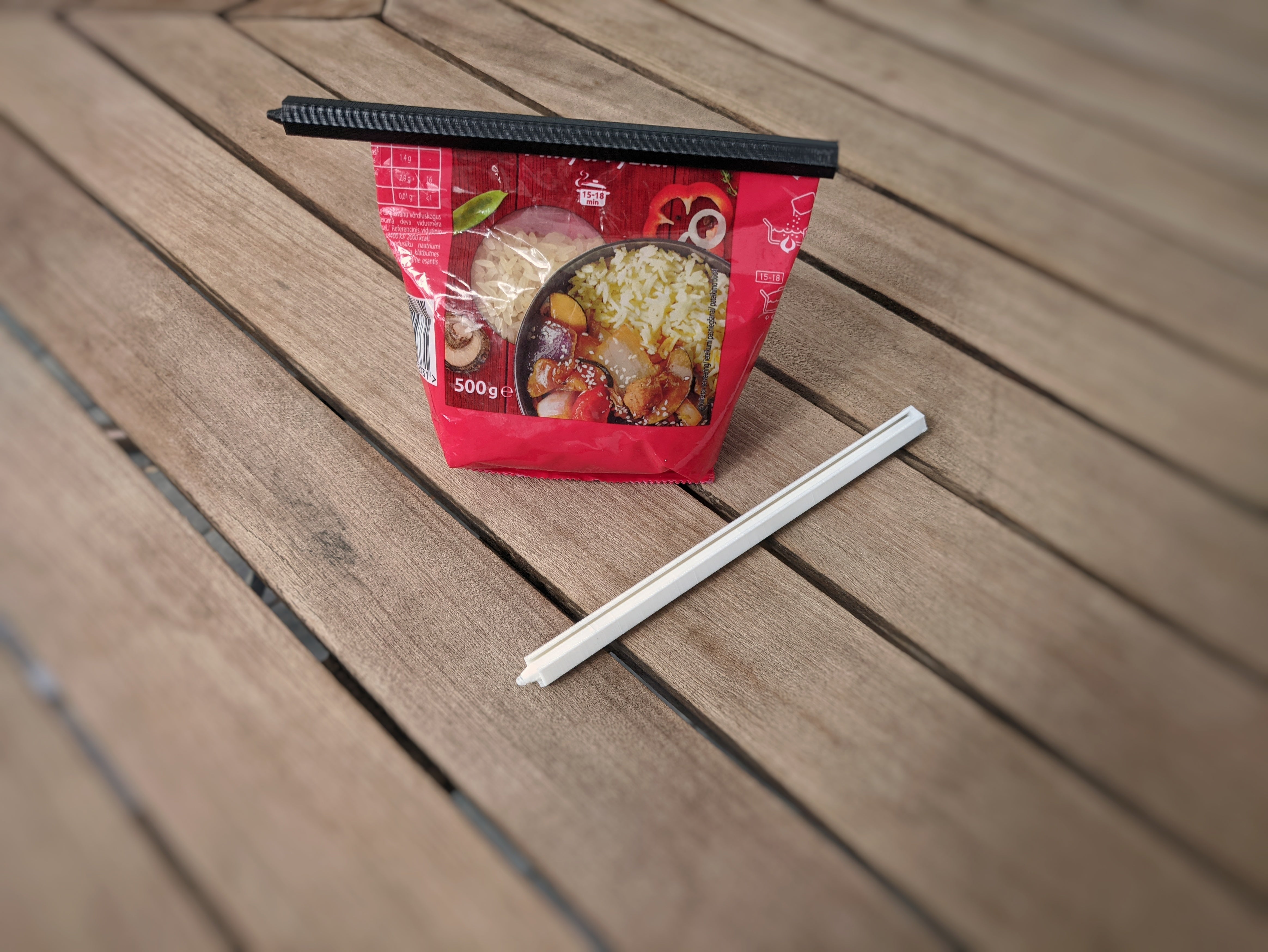 Yksinkertainen liukuva laukkuklipsi, joka on saanut inspiraationsa Gripstickistä. Tämä klipsi auttaa pitämään laukut kiinni ja paremmin järjestyksessä. Se liukuu helposti päälle ja pois ja toimii hyvin erityyppisten ja -kokoisten muovipussien kanssa.