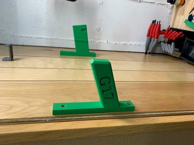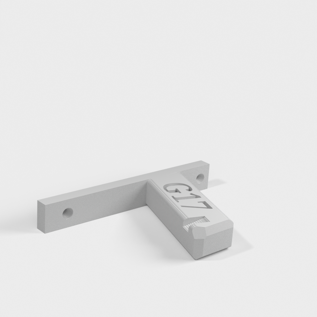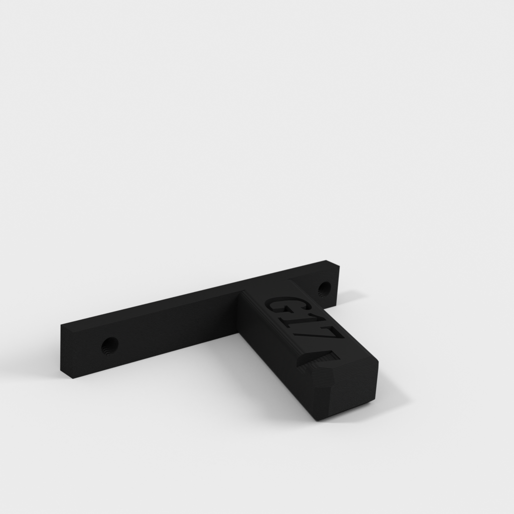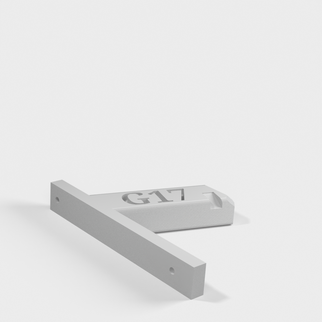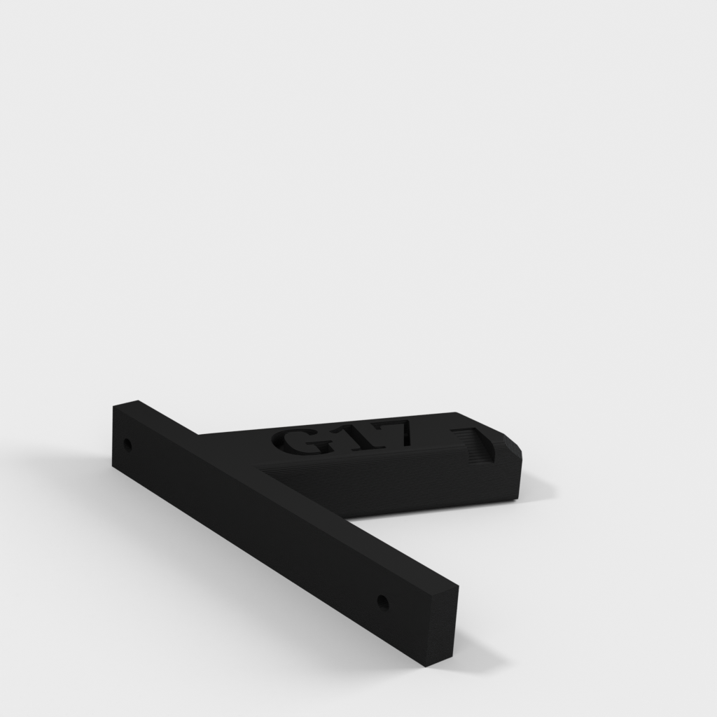 Tällä seinäkiinnikkeellä Glock 17 voidaan esitellä järjestelmällisesti ja pitää se helposti ulottuvilla.