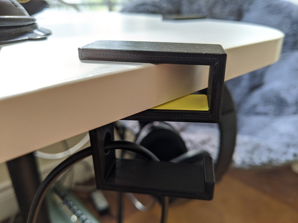 Tämä on IKEA BEKANT -pöytään suunnitellun koukun remix-versio. Alkuperäinen koukku oli liian pieni, joten tässä versiossa on leveämpi yläkoukku. Se istuu täydellisesti muutaman post-it-lapun avulla kiristääksesi sitä.