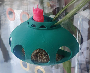 Tee ikkunalaudastasi jännittävä tarkkailupaikka tällä ainutlaatuisella ikkunalintulaudalla. Hauskan, vaaleanpunaisen avaruusolennon muotoinen ruokintapaikka houkuttelee nopeasti huomiota pieniltä linnuilta, jotka haluavat nauttia kevyen aterian. Täydellinen sinulle, joka haluat tuoda luonnon lähemmäksi ja nauttia värikkäästä linnustosta suoraan olohuoneesta. Tämä lintulauta ei ole vain käytännöllinen, vaan myös koristeellinen lisä, joka herättää varmasti keskustelua ja iloa. Ihanteellinen kaikille, jotka rakastavat lintuja ja haluavat lisätä leikkisän elementin kotiinsa.