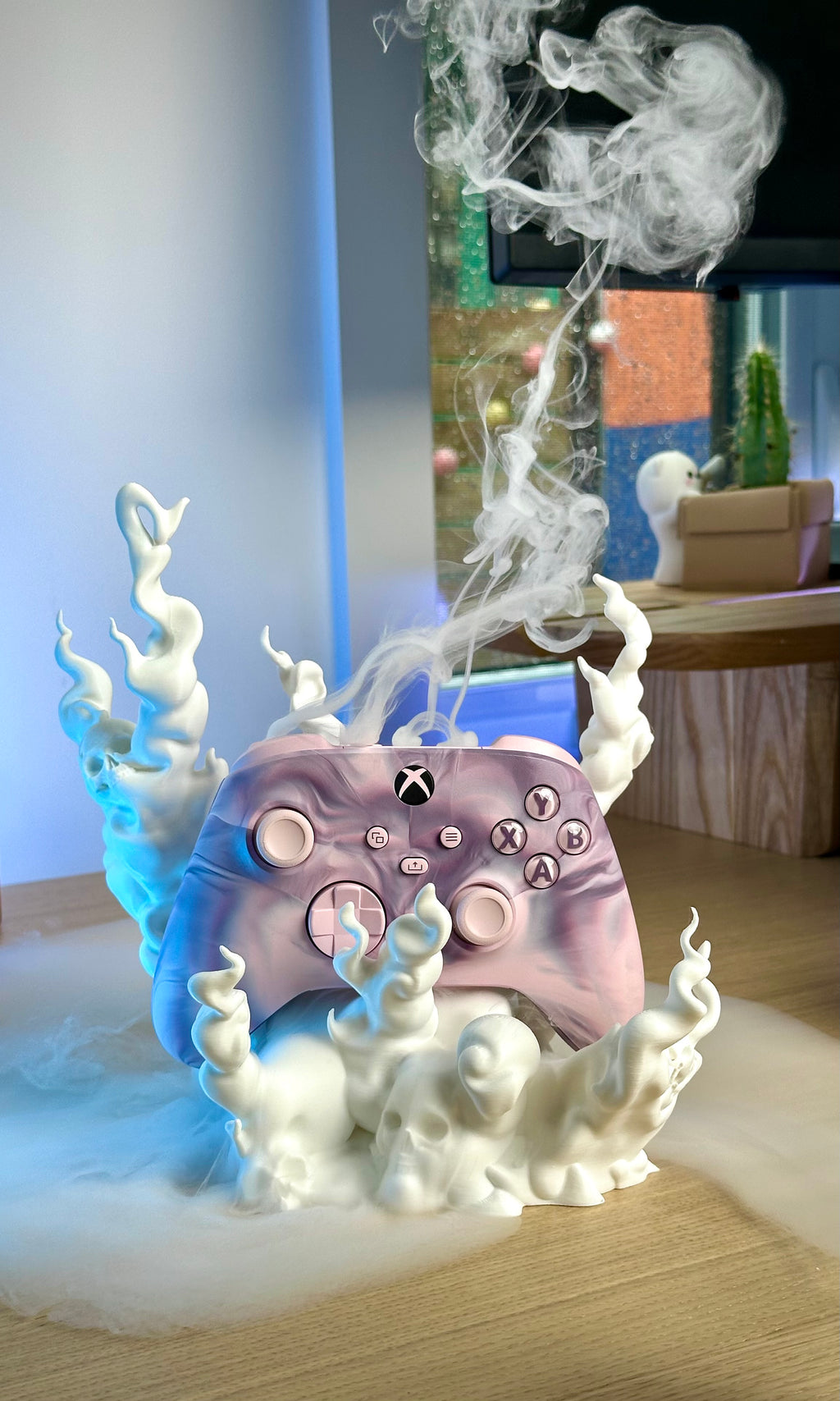 • Unik holder formet som et kranie med et røgfyldt, uhyggeligt design.