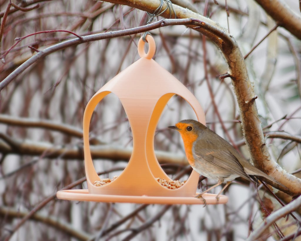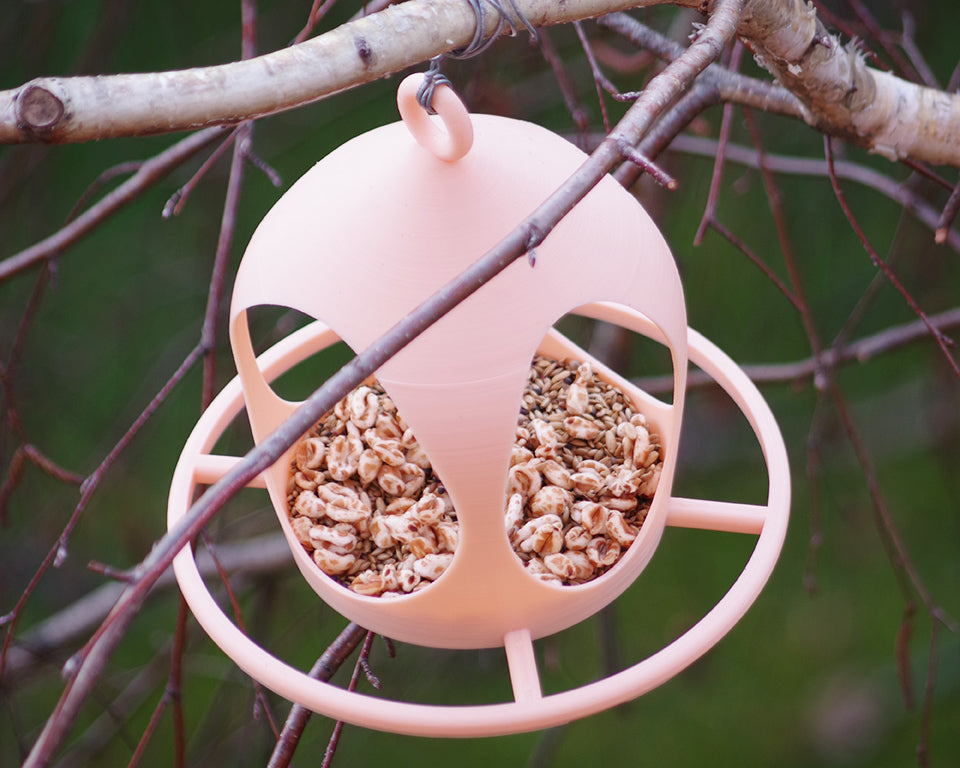 Kätevä linnunruokintateline tyhjennysrei'illä