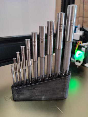 - Järjestää porat ja reamerit kokoihin 3, 4, 5, 6, 7, 8, 9, 10, 11 ja 12 mm.