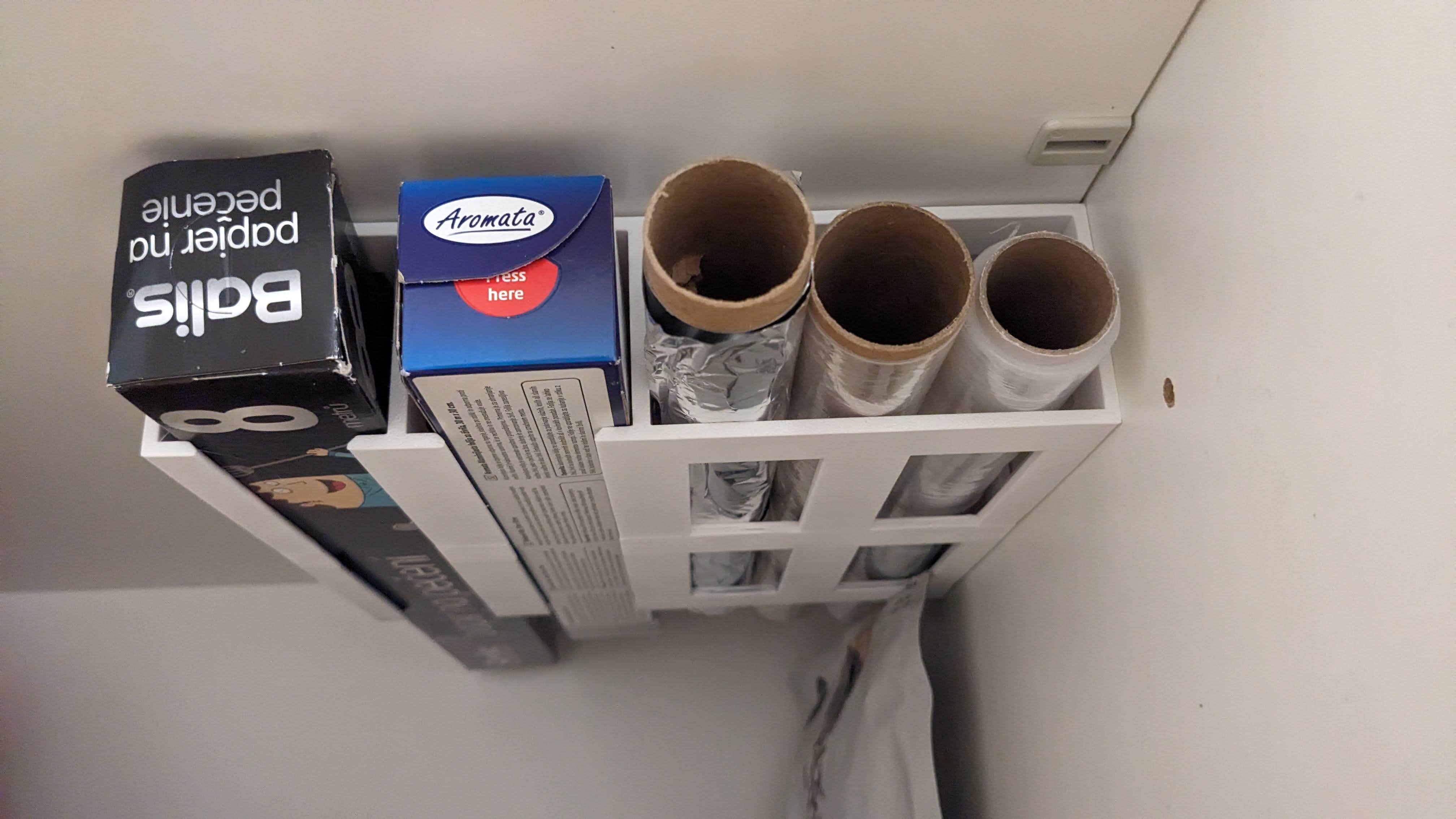 Tämä käytännöllinen foliokotelo on suunniteltu optimoimaan keittiösi tila. Kiinnittämällä sen huomaamattomasti hyllyn alle hyödynnetään muuten käyttämätöntä aluetta tehokkaasti. Tämä älykäs tarjotin antaa sinulle oman paikan folion, talouskalvon tai leivinpaperin säilyttämiseen, mikä auttaa luomaan enemmän järjestystä ja yleiskatsausta. Tukeva rakenne varmistaa, että rullat pysyvät paikoillaan ja ovat helposti saatavilla, kun tarvitset niitä ruoanlaitossa. Se on yksinkertainen ja toimiva tilaa säästävä ratkaisu, joka edistää järjestäytyneempää ja virtaviivaisempaa keittiöympäristöä.