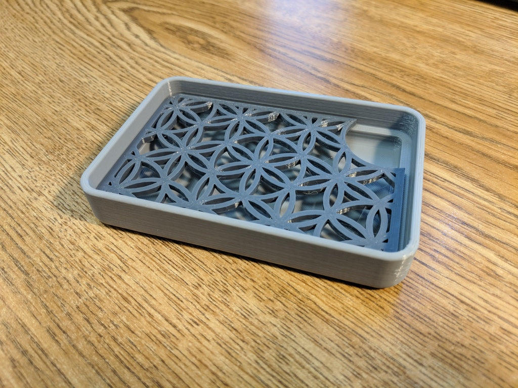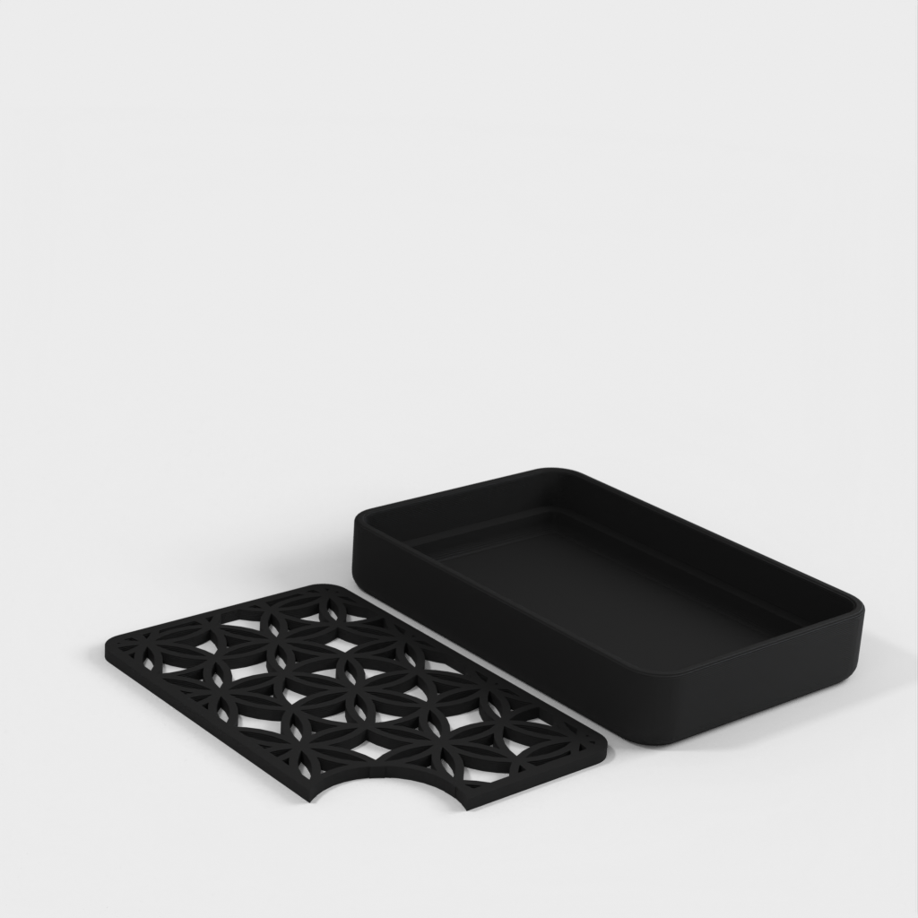 Kulmaan leikattu saippua-astia, jossa on helppo vedenpoisto
