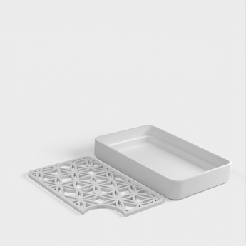 Tämä on käytännöllinen ja tyylikäs saippua-astia, joka on suunniteltu kiinteällä pohjalla ja leikatulla kulmalla, jotta ylimääräinen vesi on helppo kaataa pois. Ainutlaatuisen rakenteen ansiosta saippua on helppo säilyttää ja pitää kuivana käyttökertojen välillä, mikä pidentää saippuan käyttöikää ja pitää kylpyhuoneesi siistinä ja järjestyksessä.