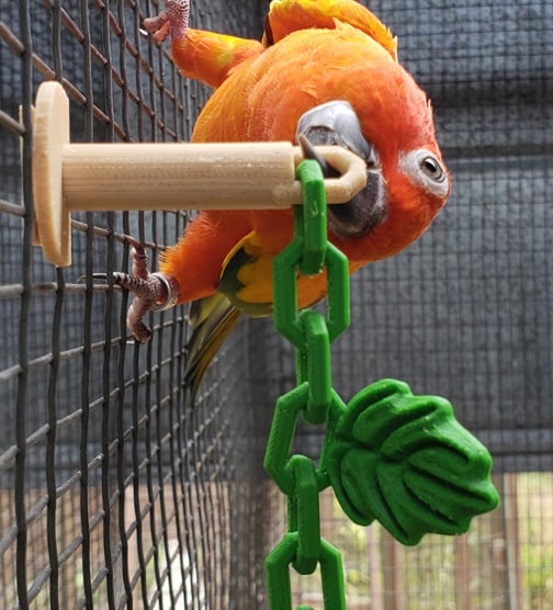Lelu yhdistää tukevan ketjun viehättäviin viiniköynnöksiin, jotka houkuttelevat lintujen huomion. Kirkkaan värin ansiosta linnun on helppo nähdä, ja ainutlaatuinen muoto stimuloi niiden luonnollista uteliaisuutta ja leikkisyyttä.