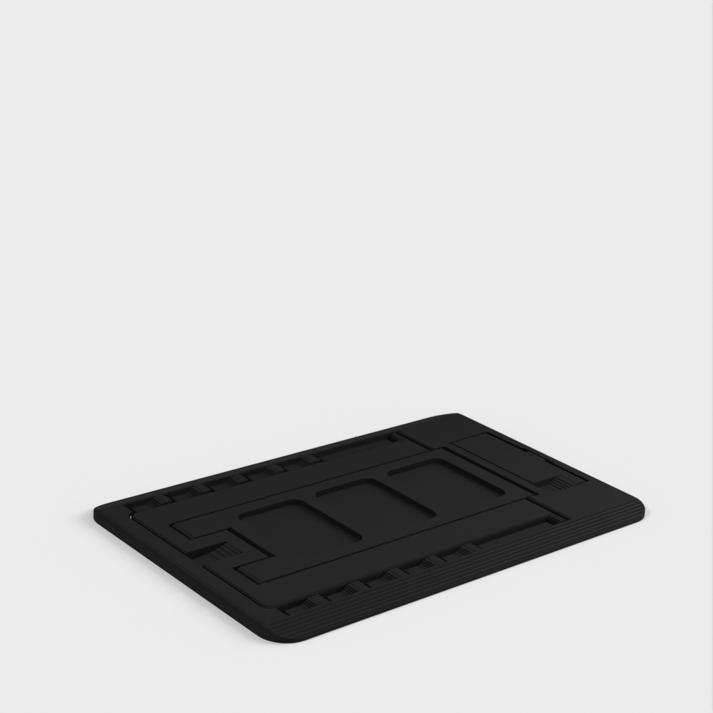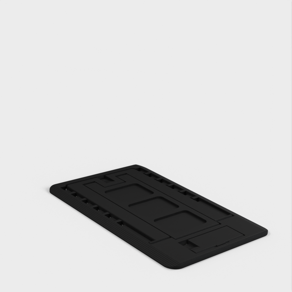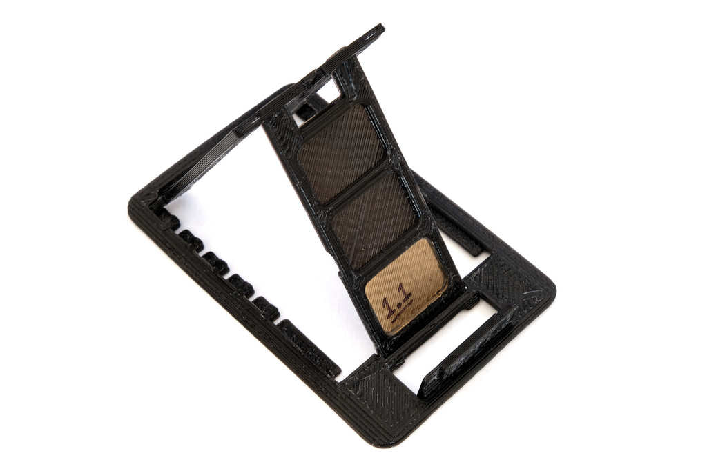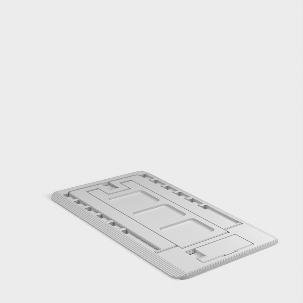 Tämä on luottokortin kokoinen, 2 mm paksu, kokoontaitettava puhelimen pidike, joka on suunniteltu sopimaan helposti mihin tahansa ohueen lompakkoon. Tämä kätevä pieni vekotin perustuu Tämän puhelimen pidikkeen. Se on kätevästi helppo ottaa mukaan minne tahansa ja siihen mahtuu useimmat älypuhelimet.