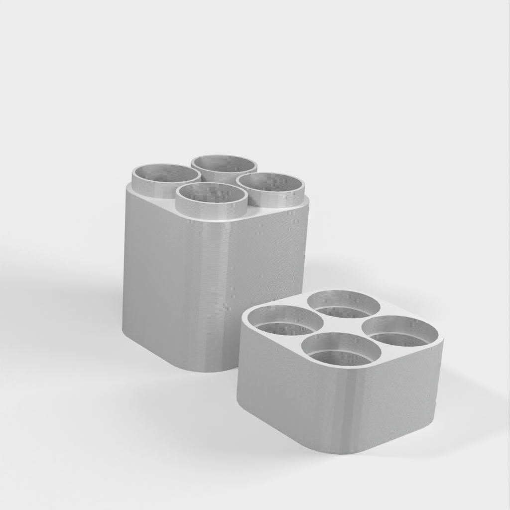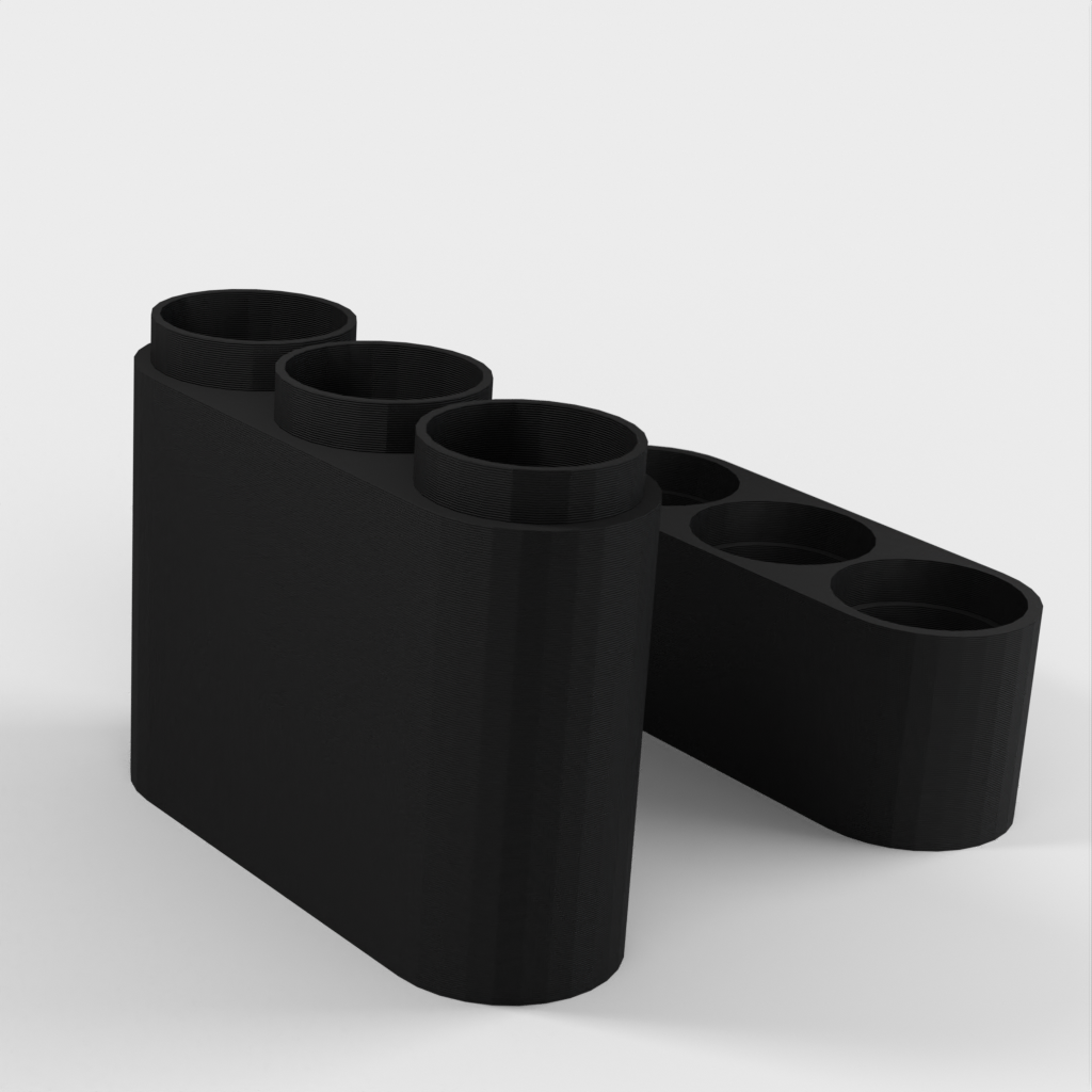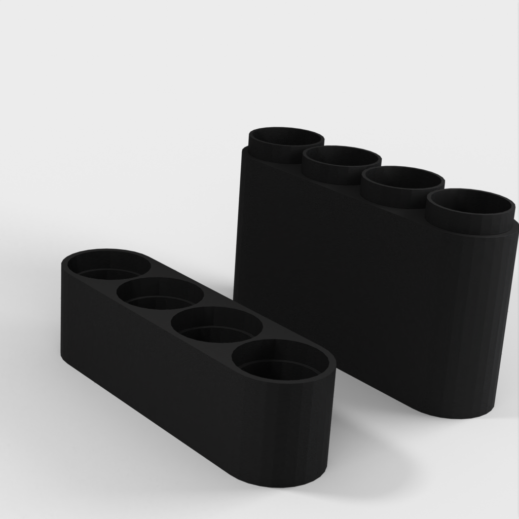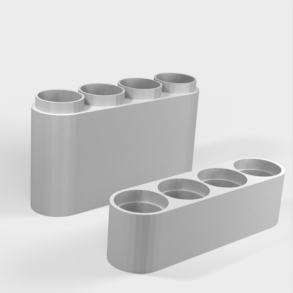 Matkateline AA- ja AAA-paristoille auttaa järjestämään paristot tehokkaasti. Tähän pidikkeeseen mahtuu 2, 4 tai 3 paristoa joko lineaarisessa tai 2x2-matriisissa. Pidike koostuu ylä- ja alaosasta ja siinä käytetään yksinkertaista nyrkkisääntöä: Jos pieni syvennys osoittaa ylöspäin, paristo on ladattu.
