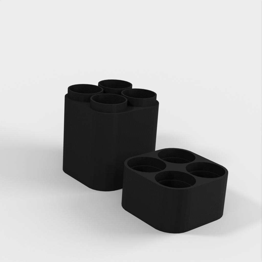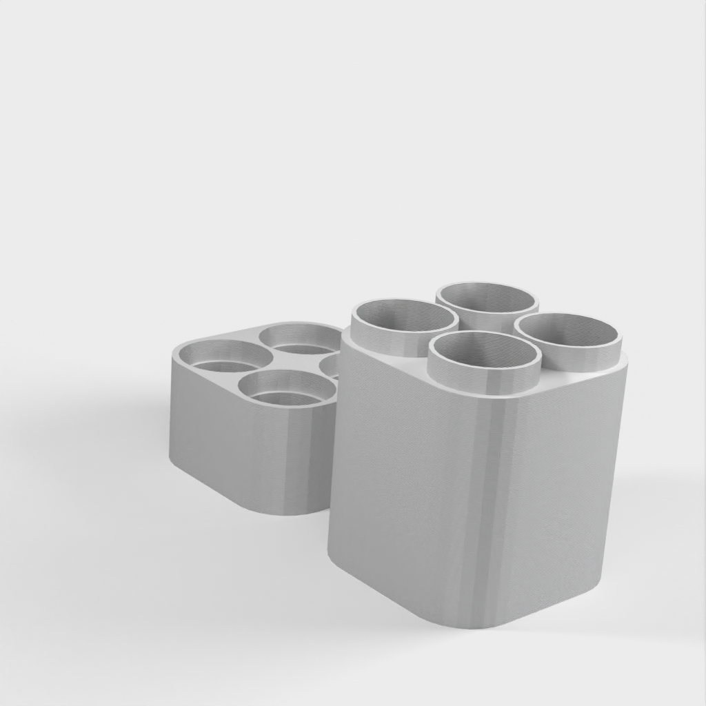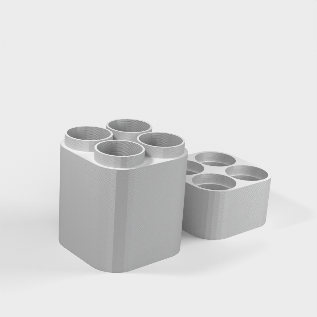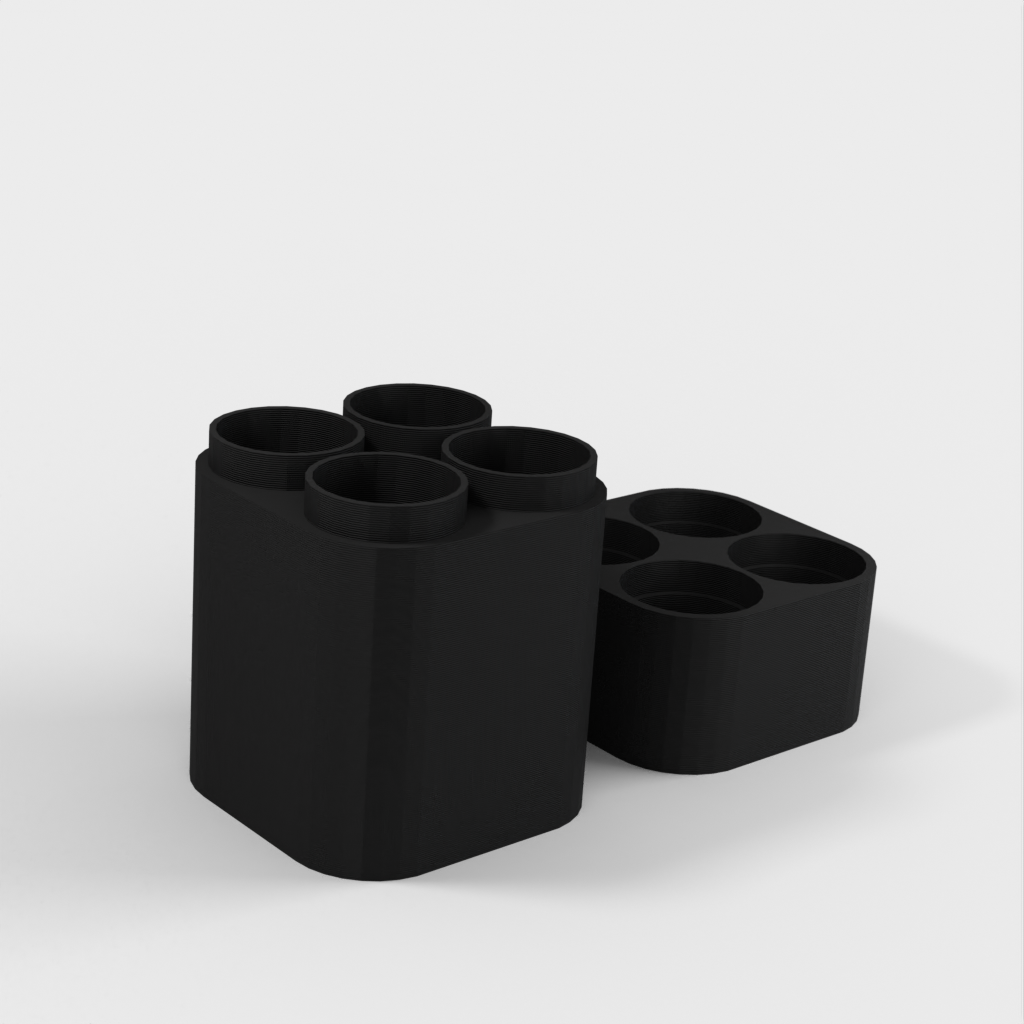 Matkateline AA- ja AAA-paristoille auttaa järjestämään paristot tehokkaasti. Tähän pidikkeeseen mahtuu 2, 4 tai 3 paristoa joko lineaarisessa tai 2x2-matriisissa. Pidike koostuu ylä- ja alaosasta ja siinä käytetään yksinkertaista nyrkkisääntöä: Jos pieni syvennys osoittaa ylöspäin, paristo on ladattu.