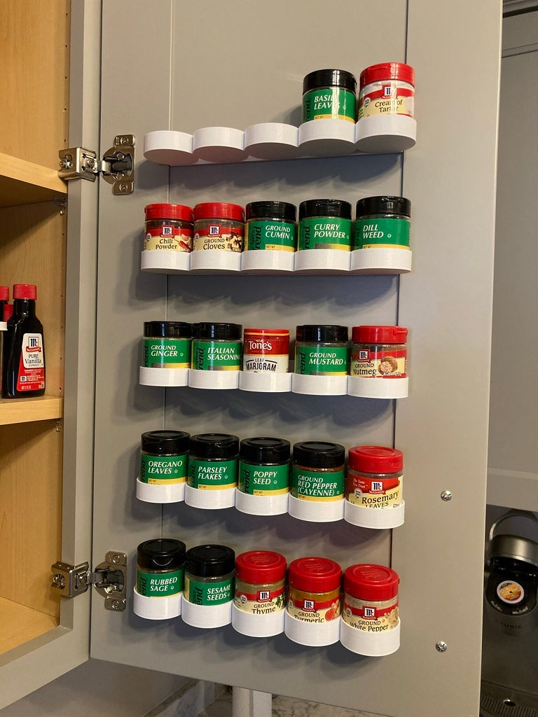 Vapauta arvokasta tilaa keittiönkaapeissasi ja työtasollasi tällä älykkäällä McCormick-maustehyllyllä. Suunniteltu pitämään jopa viisi maustelasia, kuten McCormickin tai vastaavan kokoiset, tämä ratkaisu takaa suosituimpien mausteiden järjestetyn ja helposti saatavilla olevan säilytyksen. Maustehylly on helppo asentaa kaapin oven sisäpuolelle kaksipuolisella teipillä, mikä antaa sinulle nopean pääsyn makusi antajiin viemättä turhaa tilaa. Tämä tehokas mausteiden säilytys on ihanteellinen luomaan virtaviivaisemman ja toimivamman keittiön.