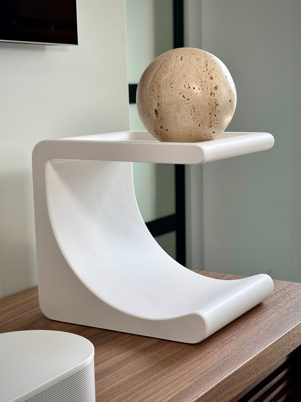 Minimalistinen pilkkuhylly pienille tavaroille ja kasveille