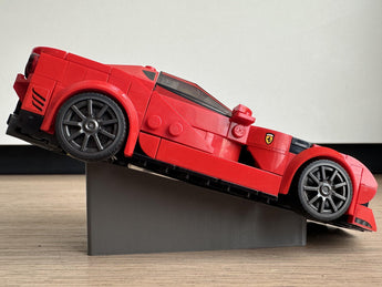• Minimalistinen esittelyteline, joka on suunniteltu erityisesti LEGO Speed Champions -autoille.