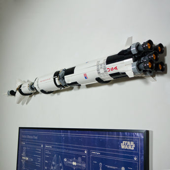 Tämä teline tarjoaa vankan ratkaisun Saturn V -rakettisi esittelyyn. Laukaisutornin inspiroima muotoilu mahdollistaa pystysuoran sijoituksen seinälle tai vaakasuoran sijoituksen pöydälle. Malli voidaan esitellä koottuna tai erillisissä vaiheissa, mikä tarjoaa joustavia vaihtoehtoja kokoelmaasi varten. Teline vaatii asennukseen 4 mm ruuvit.