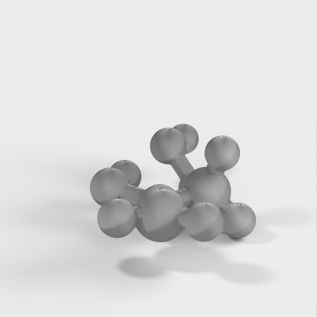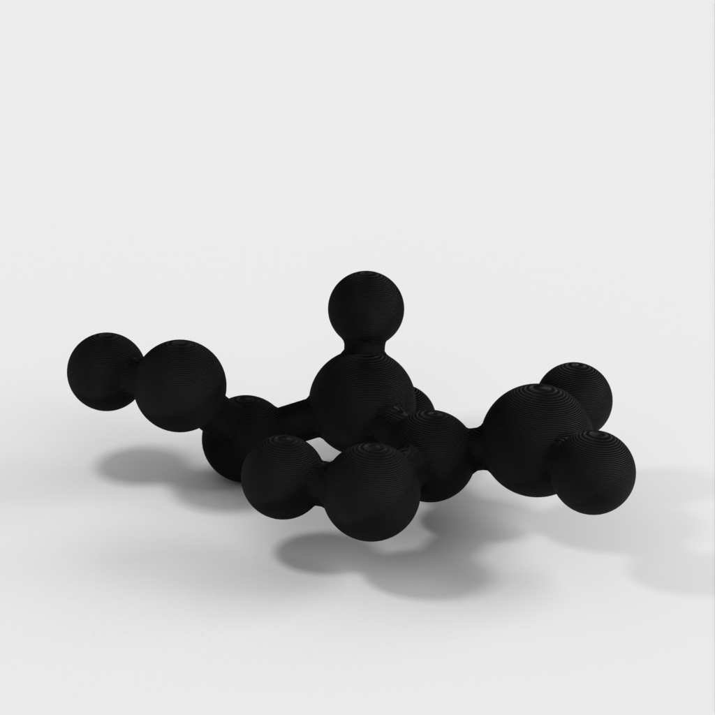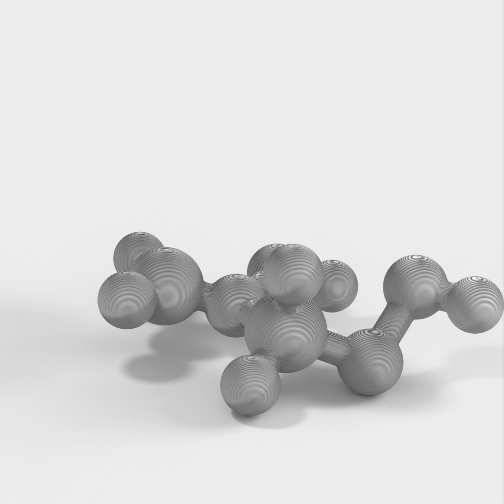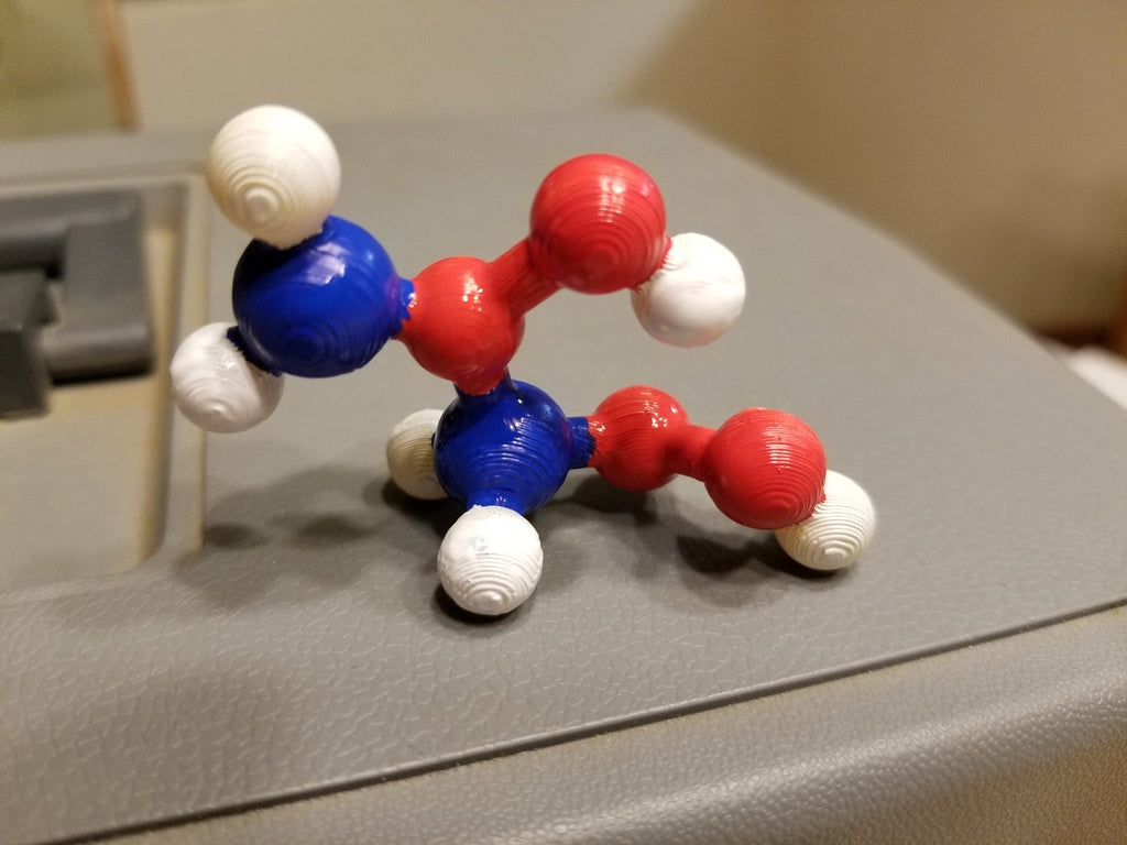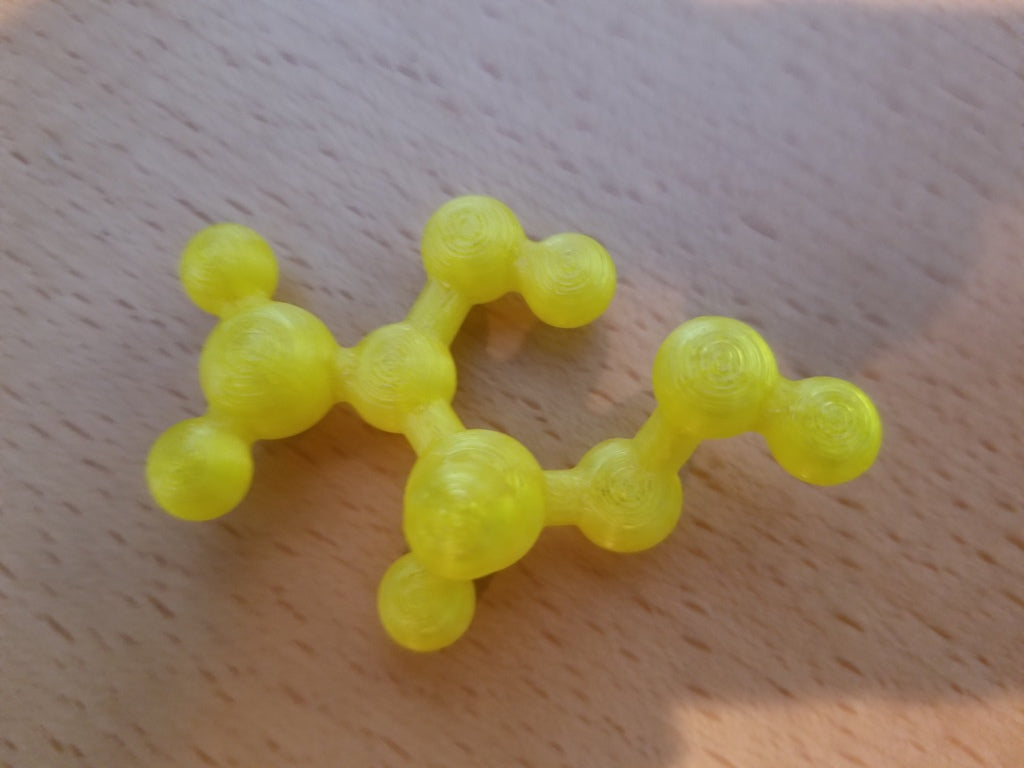 Tämä on vinyyliasetaatin molekyylimalli. Mallia käytetään opettamaan lapsille kemiaa, erityisesti polyvinyyliasetaattia (PVA), joka on valkoinen liima, jota käytetään liman valmistukseen alakoulussa. Tämä malli tarjoaa visuaalisen esityksen siitä, mitä limassa on.