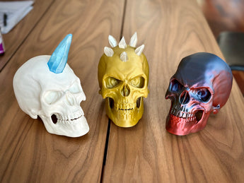 Näissä nivelletyissä kallo-malleissa on liikkuva leuka, jota ohjaa piilotettu mekanismi. Ne ovat ihanteellisia Halloween- tai ympärivuotiseen koristeluun, ja niitä on saatavana Classic-, Punk- ja Unicorn-versioina. Nämä ainutlaatuiset esineet on suunniteltu helppoon 'Print-in-Place' -tulostukseen, eivätkä ne vaadi tukea.