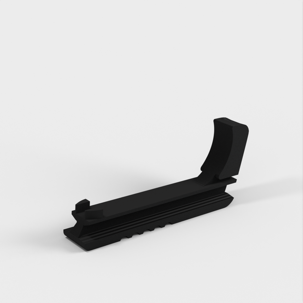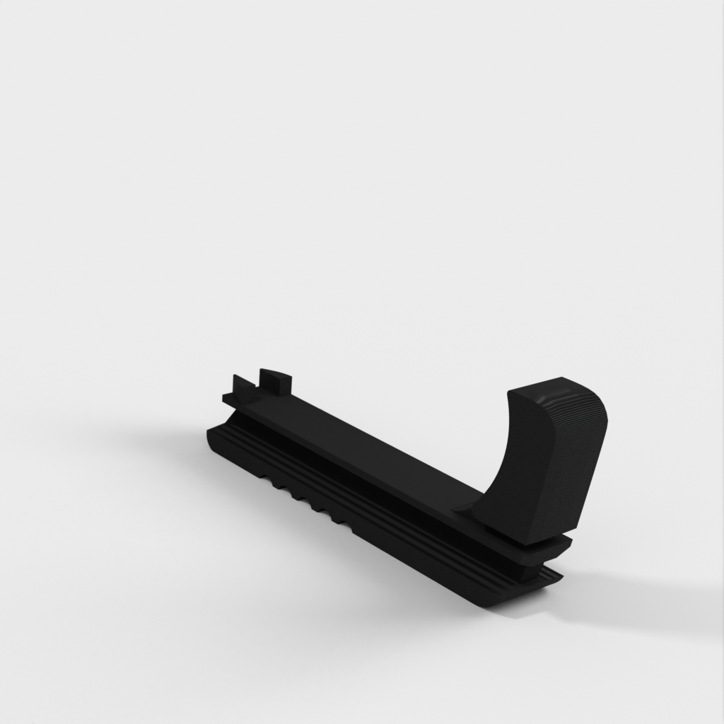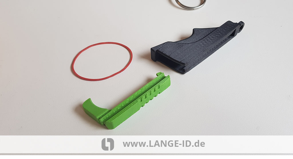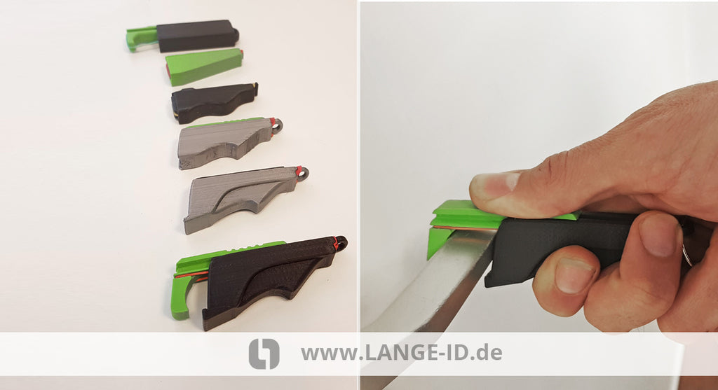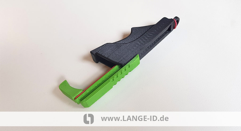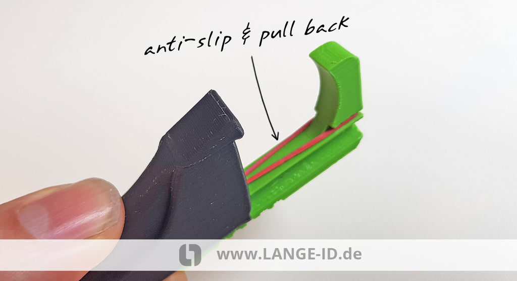 Oksien avaamisen lisäksi koukun etuosaa voidaan käyttää myös painikkeiden painamiseen julkisissa tiloissa. Koukun kumirengas varmistaa sen liukumisen kahvassa ja estää sen putoamisen.