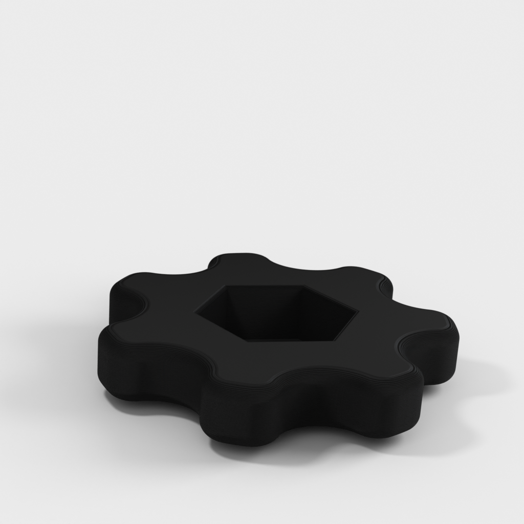 - Muuntaa 3/8-16-kuusiokoloruuvin tai -mutterin ergonomiseksi kääntökahvaksi.
