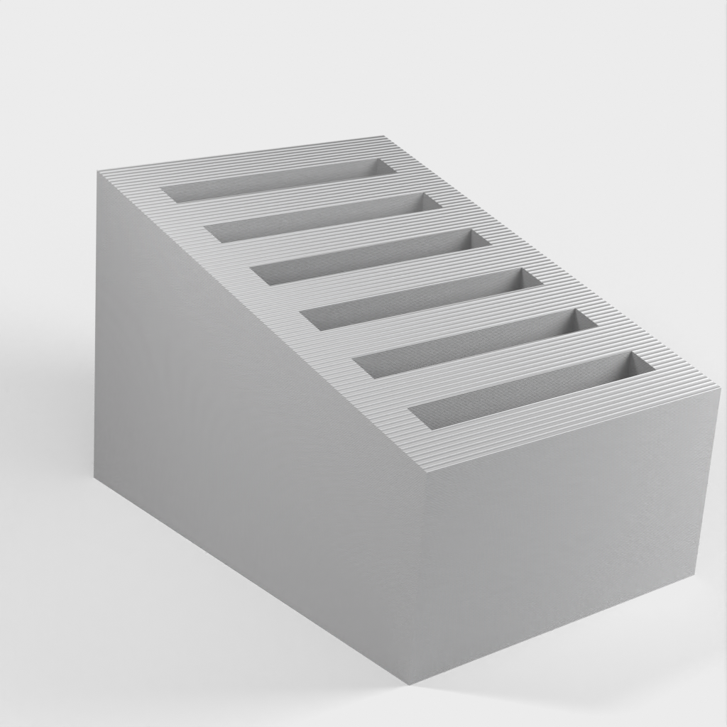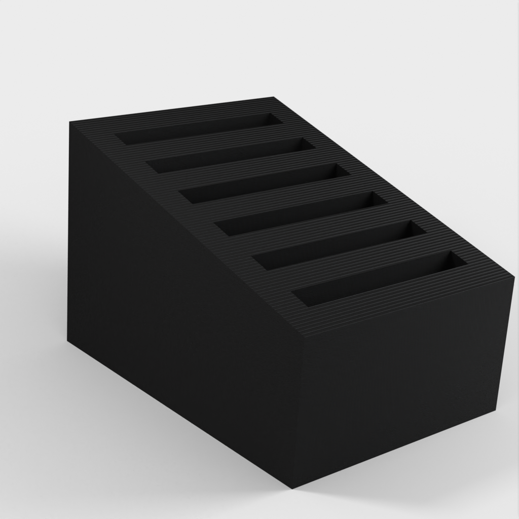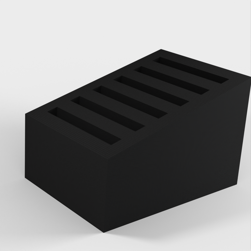 Parametrinen SD-korttipidike on päivitetty versio jpcw:n SD-korttipidikkeestä. Tämä malli voidaan räätälöidä tarpeidesi mukaan. Ensisijainen parametri on korttipaikkojen määrä, mutta voit myös säätää korttipaikkojen kokoa tiukemman tai löysemmän istuvuuden aikaansaamiseksi. Lisäsäätöjä, kuten yläkulmaa edestä taaksepäin tai kortin erotusväliä, voidaan myös muuttaa.