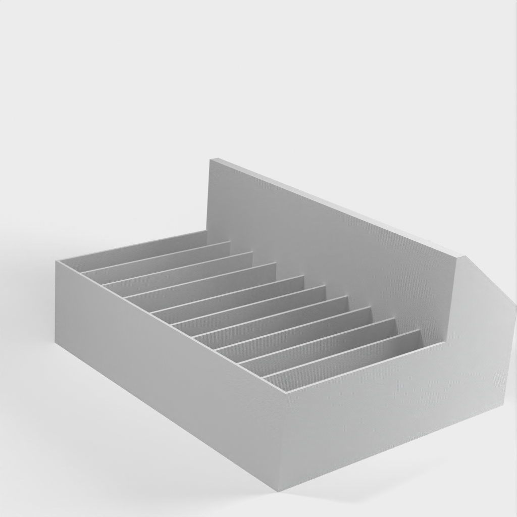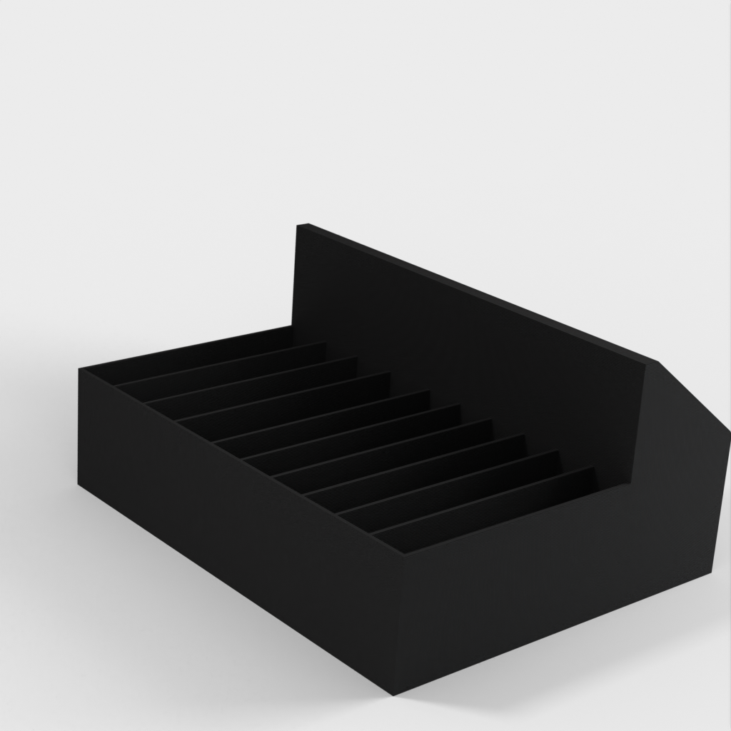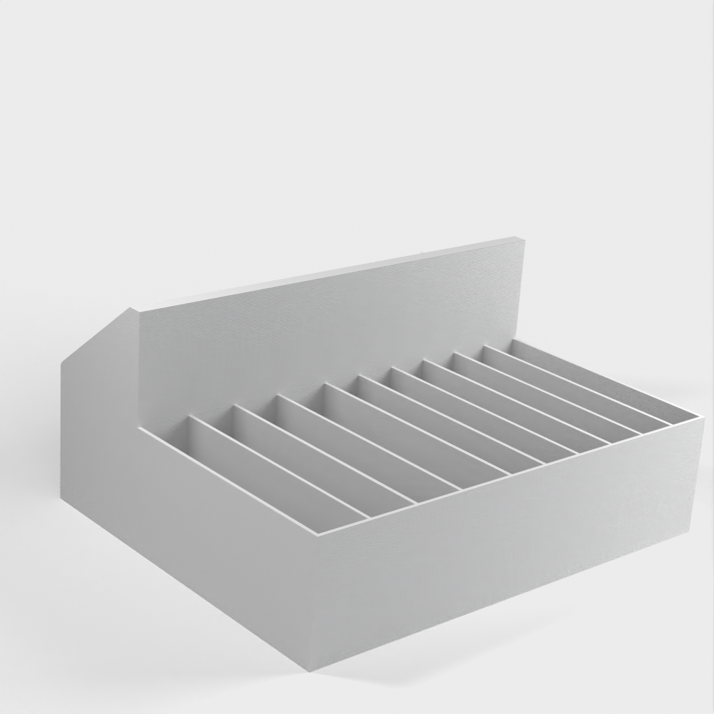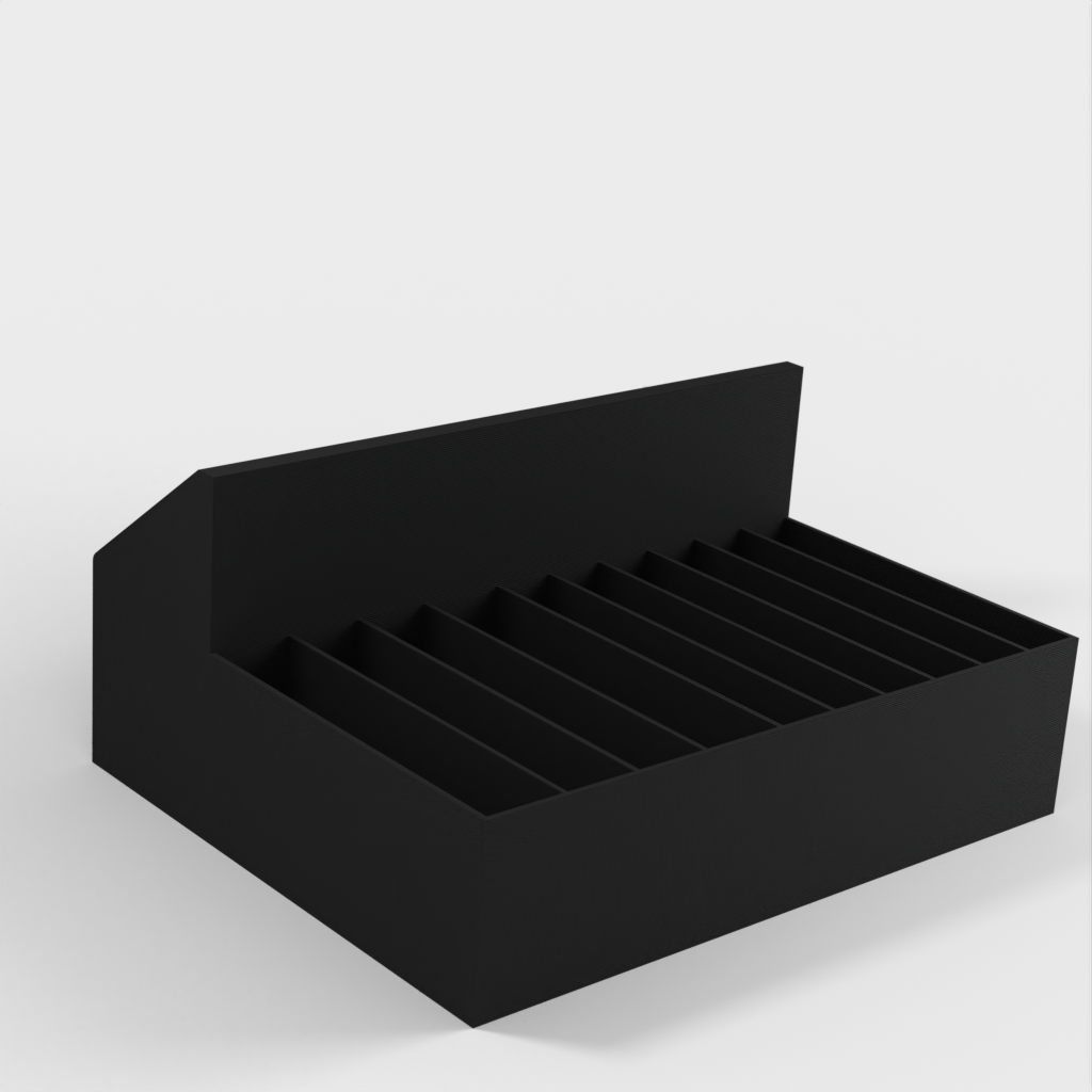 Tämä Pliers Holder Remix on suunniteltu järjestämään työkalukokoelmasi helpommin. Siinä on suuremmat soikeat reiät, joihin mahtuu puoliavain ja leveämmät aukot paksumpia pihtien kahvoja varten. Pyöreän reikäosan alaosaan on lisätty huuli, joka estää pienempien esineiden liukumisen pois/läpi. Täydellinen 3D-tulostimille, harrastajille, työpöydän organisointiin ja työpajan säilytykseen.