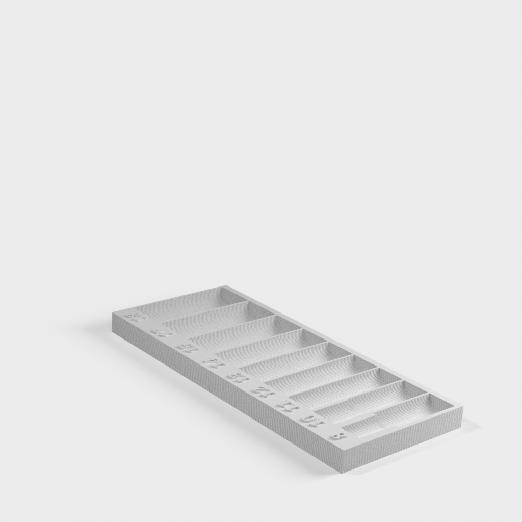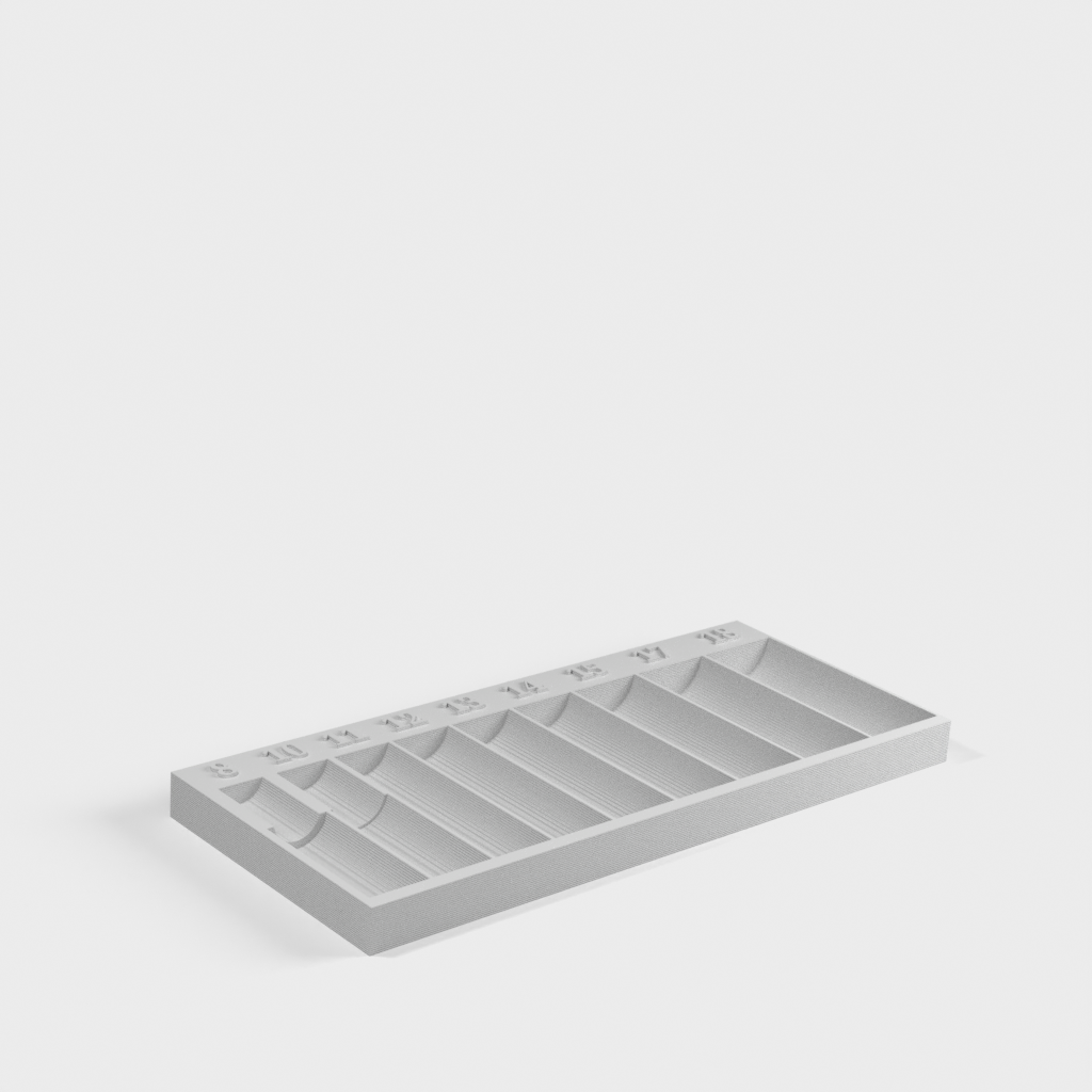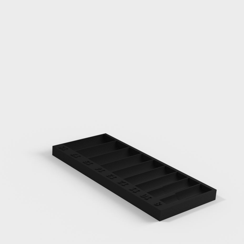 Tämä käytännöllinen hylsyjärjestäjä on suunniteltu syvien hylsyjen ja pohjien järjestämiseen. Siinä on tilaa kahdeksalle 3/8" syvälle hylsylle, ja se auttaa pitämään työkalusi siististi yhdessä ja estää niitä makaamasta irrallaan laatikoissa tai työtasoilla.