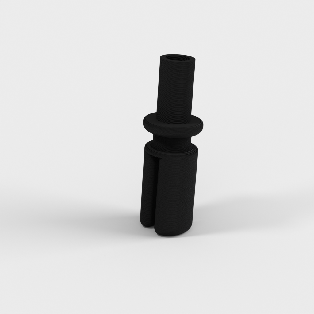 Tämä plektranpidike on kehitetty parantamaan tavallisen kitaran lattiatelineen toimivuutta. Se korvaa telineen nykyisen päätykappaleen ja tarjoaa integroidun ratkaisun kitaran plektrojen säilyttämiseen. Suunnittelu varmistaa, että telineen alkuperäinen kumiosa, joka vaimentaa ja pitää kitaraa, säilyy ja istuu oikein.