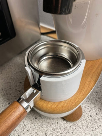 Tämä portafilter-jalusta on suunniteltu erityisesti Gaggia Classic Prolle 45 asteen lukitusnastoilla, ja se tarjoaa vakaan ja käytännöllisen ratkaisun kahvin valmistukseen. Jalusta on optimoitu useimmille pohjattomille portafilttereille, mikä tekee siitä arvokkaan lisän espresso-tarvikkeillesi. Sisähalkaisija 70,5 mm ja korkeus 48 mm takaavat turvallisen istuvuuden portafiltterillesi.