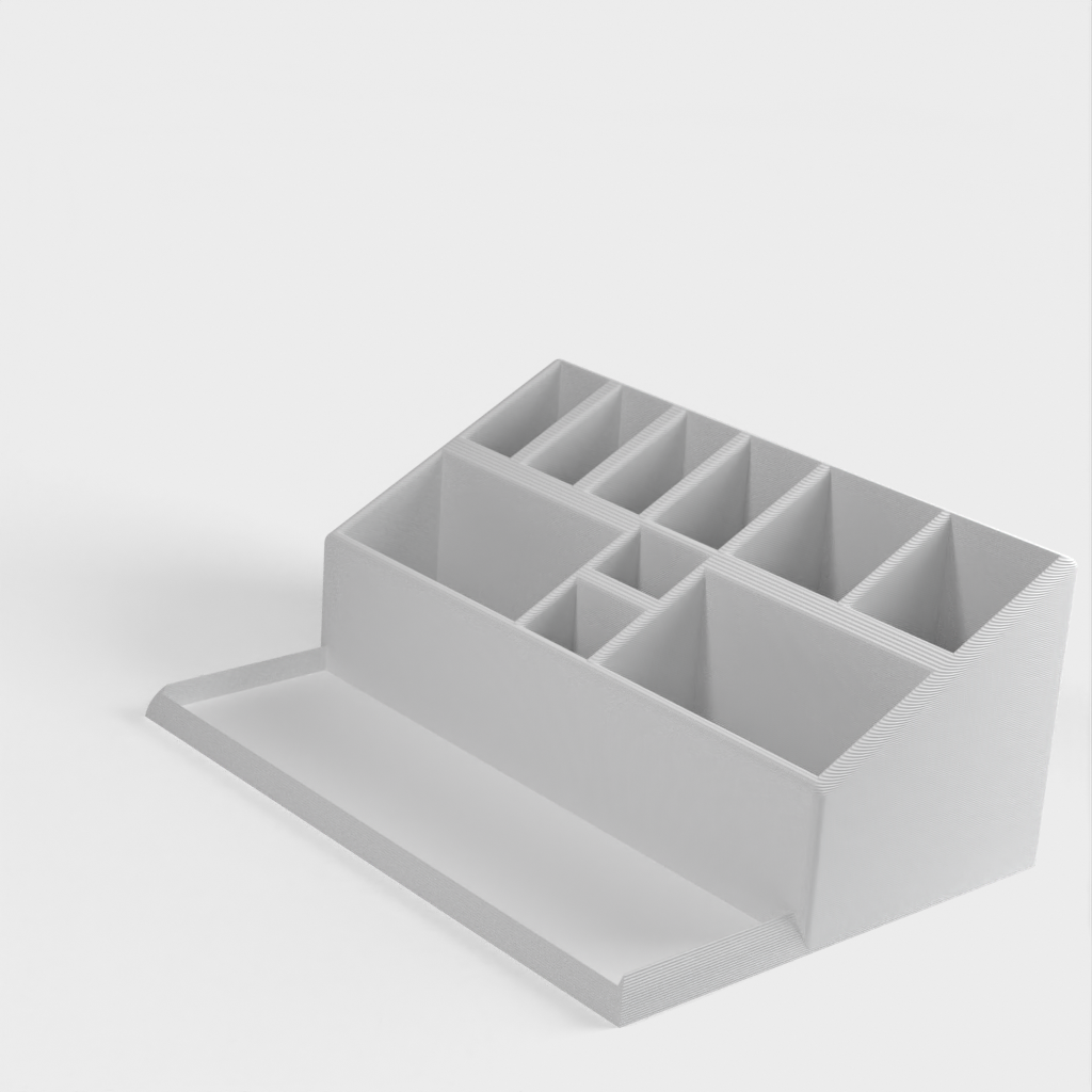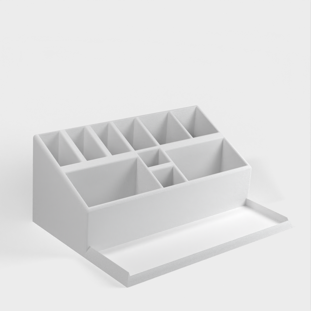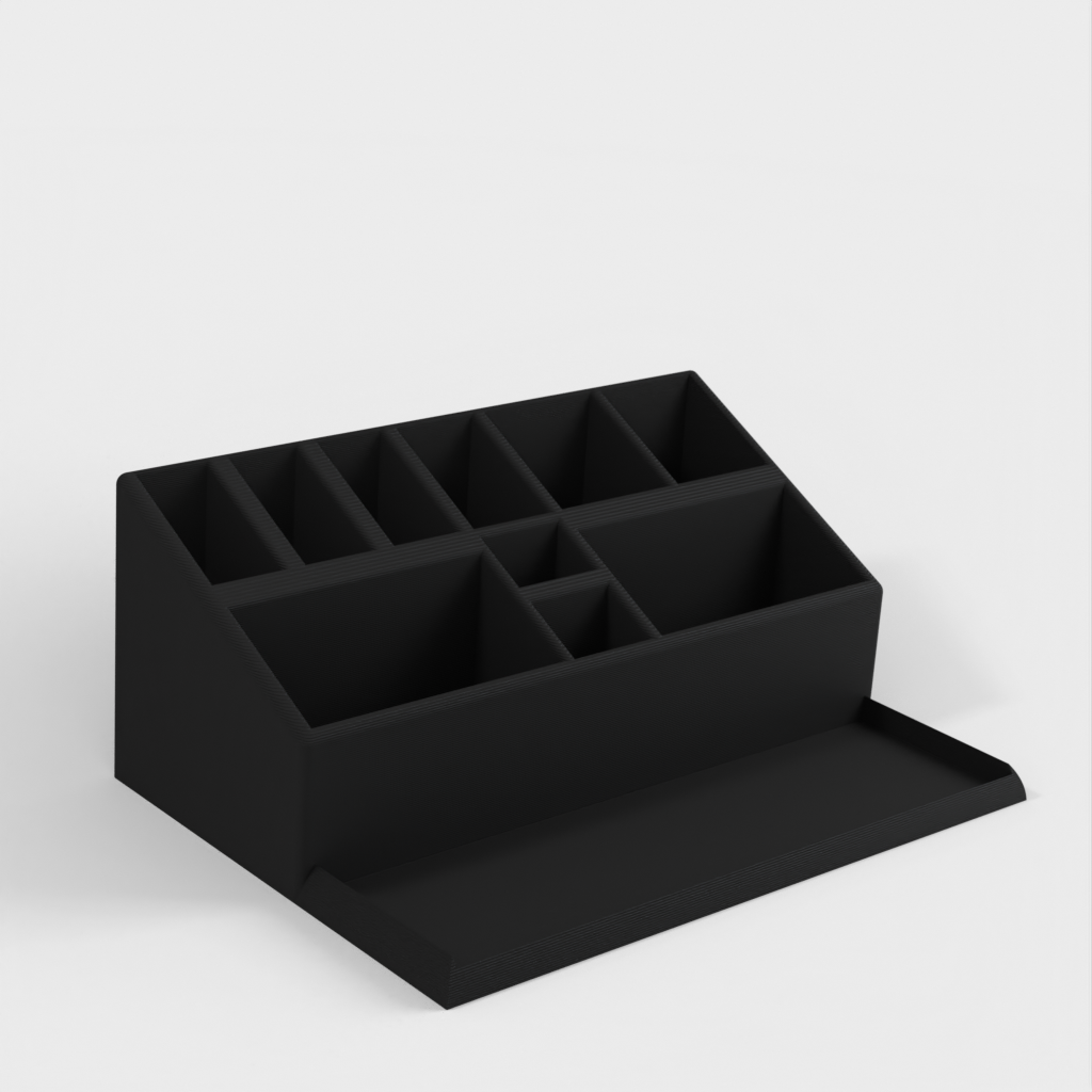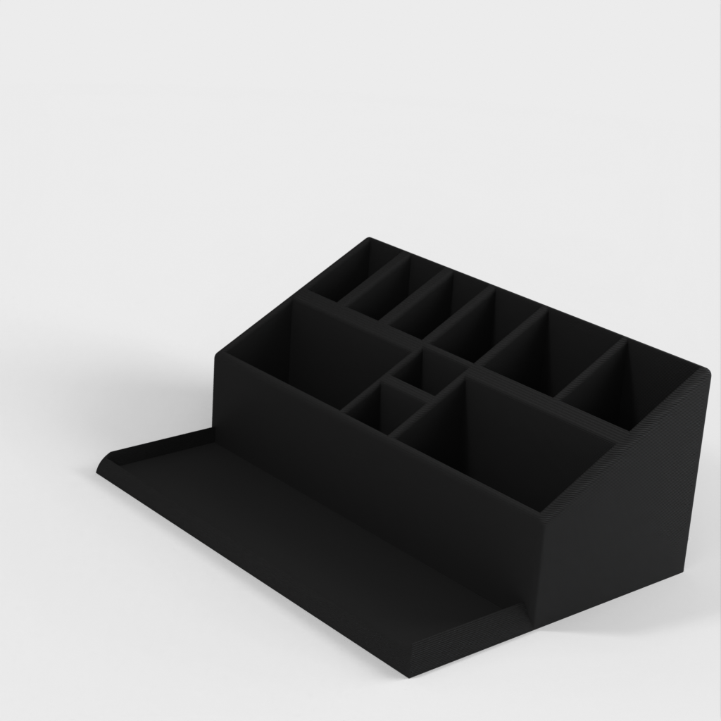 Työpöydän järjestäjä, joka sopii erinomaisesti työpöydän tavaroiden ryhmittelyyn ja järjestämiseen. Tämän järjestäjän avulla on helpompi löytää kaikki päivittäisessä työssä tarvittava. Tämän työpöydälläsi olevan pidikkeen avulla voit pitää työkalut järjestyksessä ja ulottuvilla. Täydellinen kynälle, lyijykynälle, viivaimelle ja muille pienille esineille, joita tarvitset työpöydälläsi päivittäin.