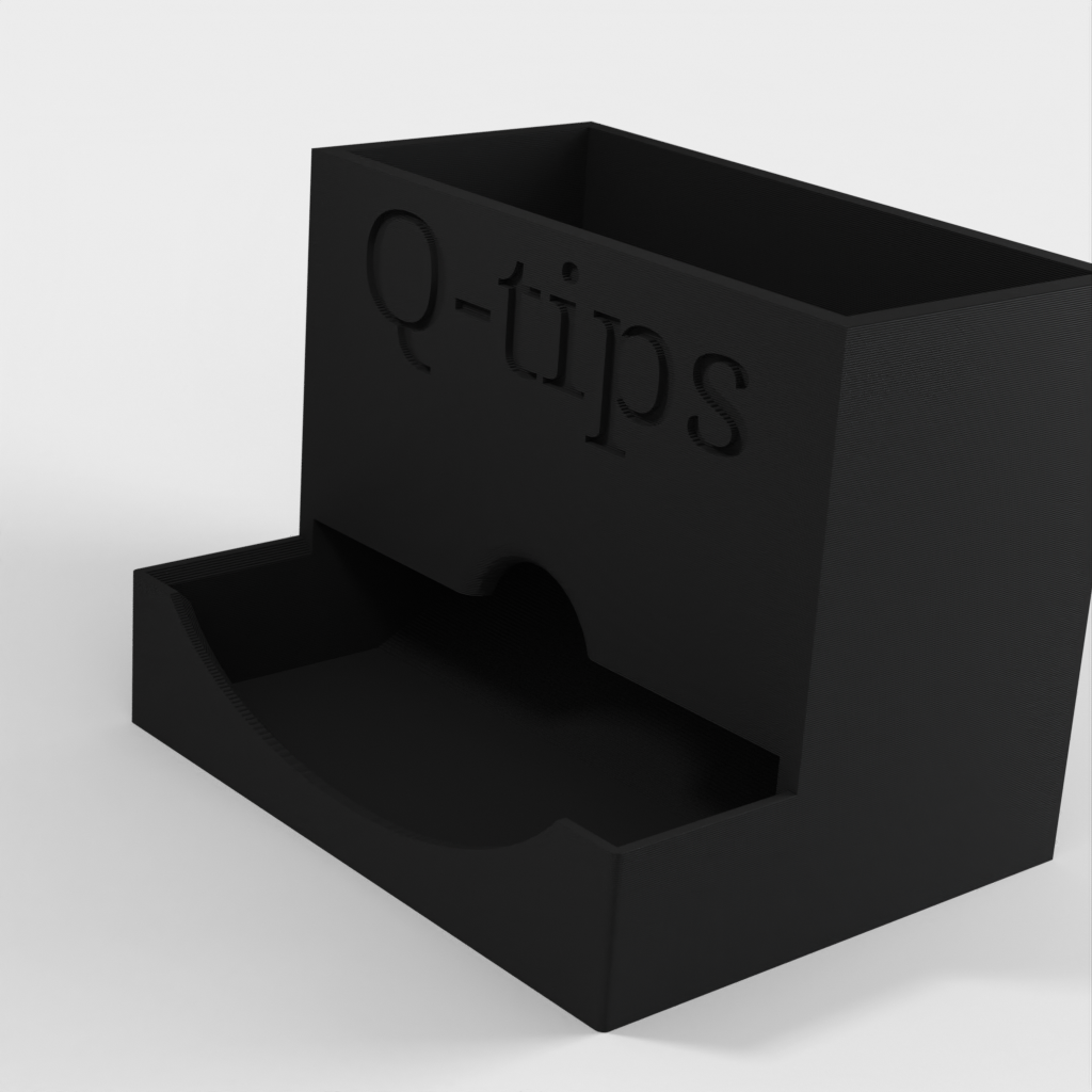 Vanupuikkopidike, jonka avulla vanupuikko on helpompi tarttua. Tämä säilytyslaatikko on suunniteltu käytännölliseksi ja helposti saatavilla olevaksi, joten voit nopeasti ottaa vanupuikon, kun tarvitset sitä. Muotoilun ja laatikon tekstin ansiosta tämä vanupuikkopidike sopii täydellisesti mihin tahansa kylpyhuoneeseen tai seinälle asennettuna peilipöytäsi viereen.