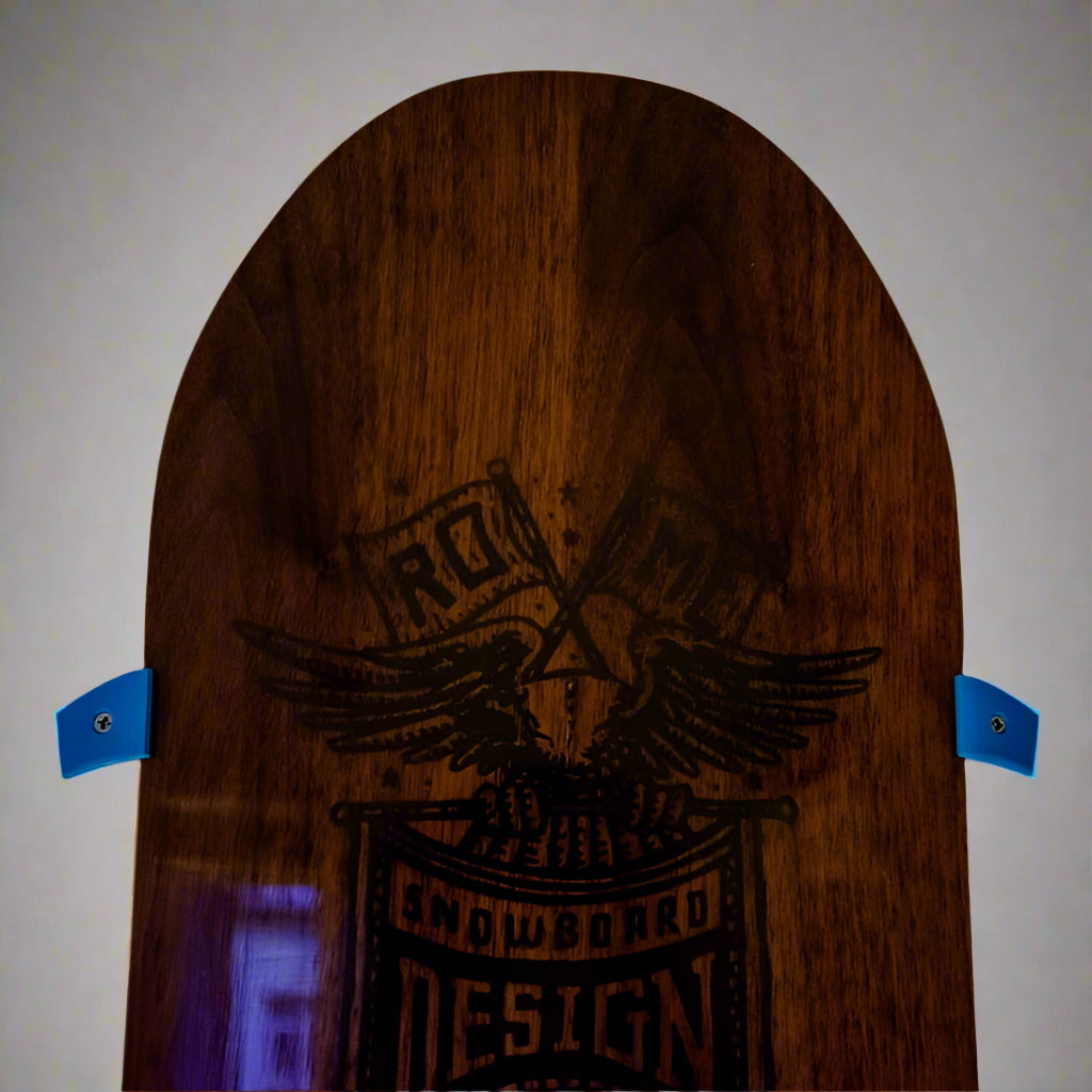 Kokoelma pystysuuntaisia seinäkiinnikkeitä lumilaudoille. Saatavana 2 versiota, joista toisessa on 2 mm:n rako seinästä, jotta lauta ei kosketa ja naarmuta sitä, ja toisessa sarja ilman. 4 mm leveä ja tehty puuruuvin päille, joiden halkaisija on 8 mm.