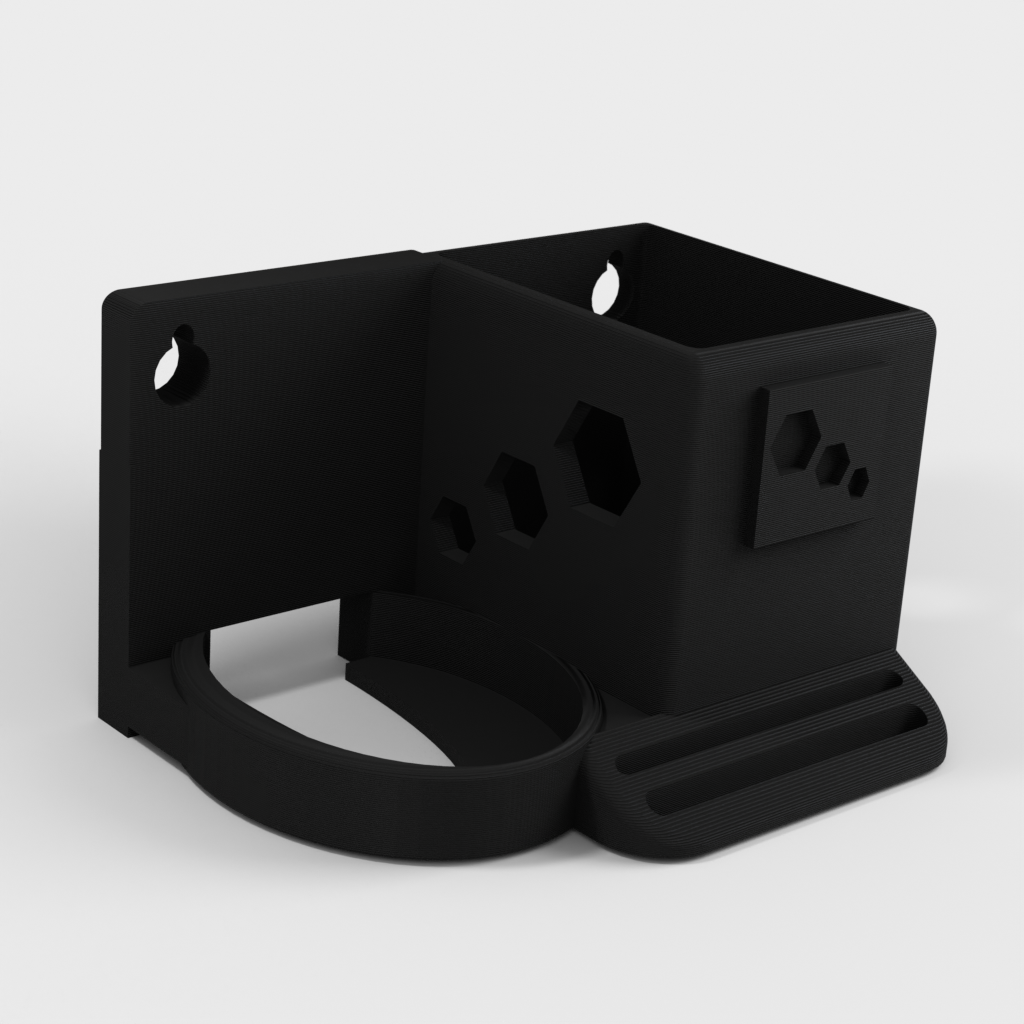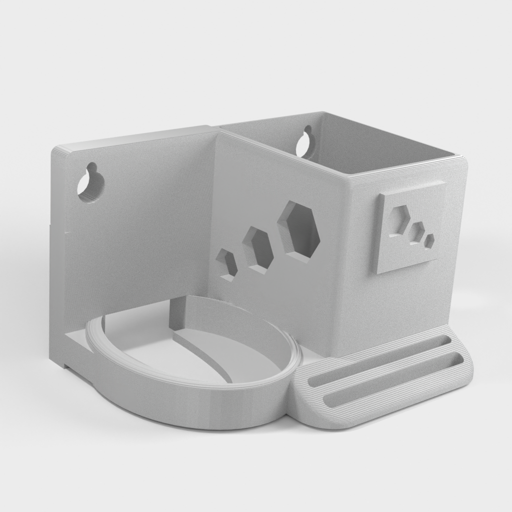 Tämä ripustettava pidike on suunniteltu säilyttämään tehokkaasti Oral-B -sähköhammasharjasi ja sen laturi. Se edistää järjestelmällisempää kylpyhuonetta pitämällä hammasharjan ja laturin yhdessä ja poissa pinnoilta. Käytännöllinen seinäkiinnitys vapauttaa tilaa pesualtaasta ja minimoi sotkua, mikä luo siistin ja toimivan alueen. Tämä laturin pidike on yksinkertainen ratkaisu kylpyhuoneen sisustuksen optimoimiseksi ja sen varmistamiseksi, että sähköhammasharjasi on aina käyttövalmis.