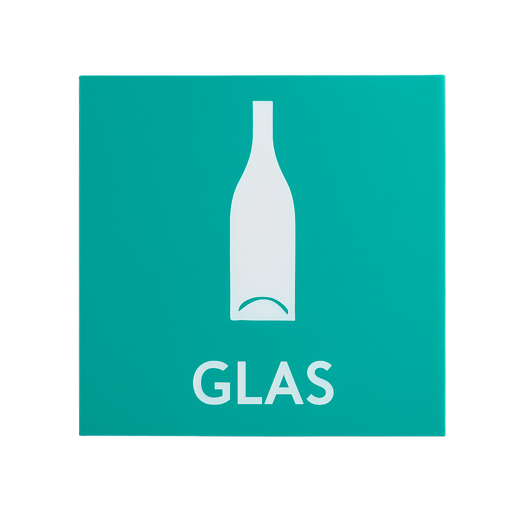 Valmistettu PLA-muovista, selkeällä ikonilla ja tekstillä, joka noudattaa tanskalaisia lajittelujärjestelmiä.