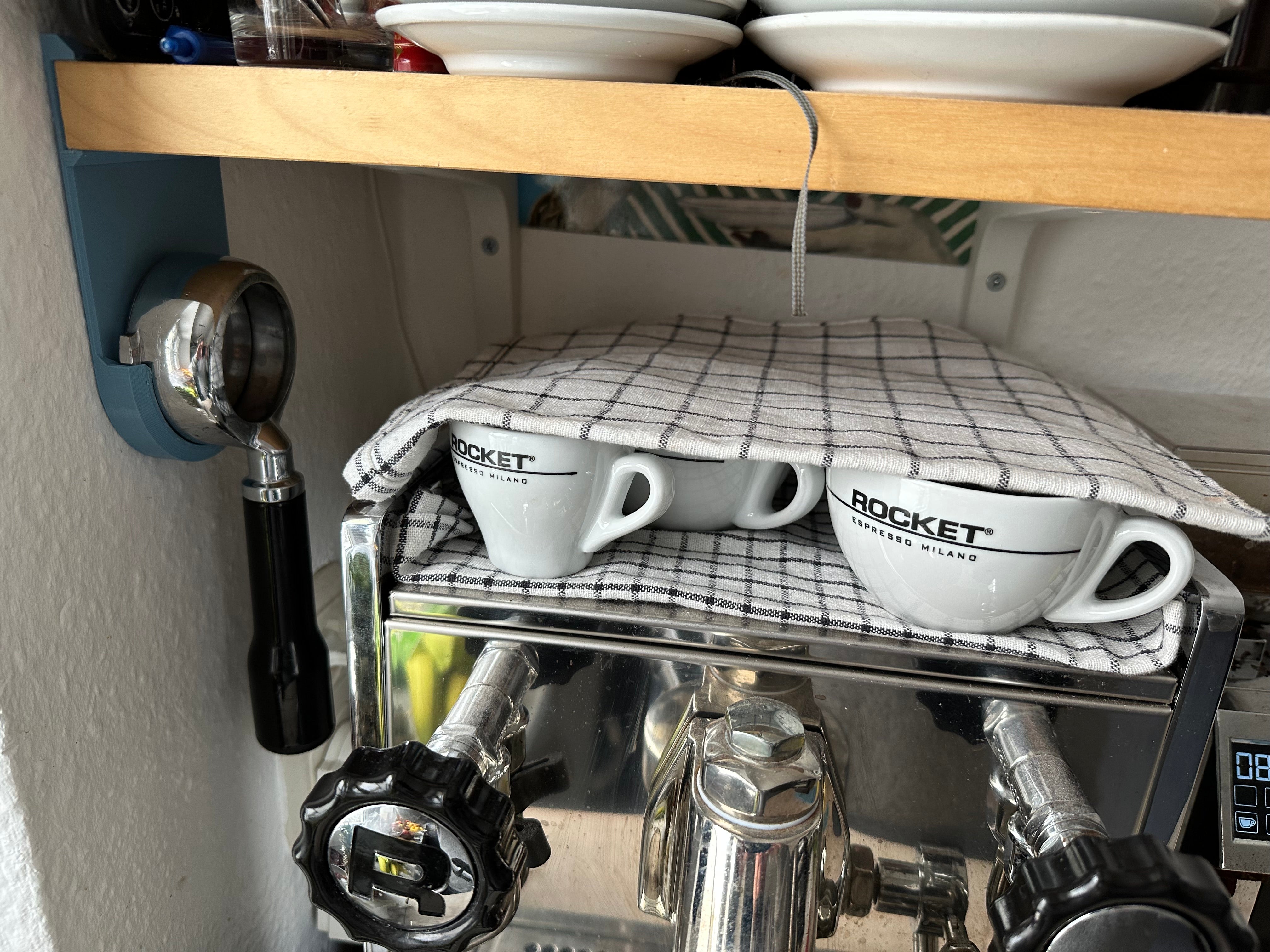 Tämä ruuviton portafilter-pidike tarjoaa käytännöllisen ratkaisun portafiltereidesi säilyttämiseen. Tämä pidike on suunniteltu erityisesti Rocket Mozzafiato -portafiltereille, ja sen avulla voit ripustaa espressotarvikkeet huomaamattomasti hyllyn alle, mikä vapauttaa arvokasta työtilaa keittiössäsi. Ihanteellisena Rocket Espresso -lisävarusteena se mahdollistaa Rocket Espresso -portafiltereidesi järjestetyn säilytyksen. Yksinkertaisen ja toimivan muotoilun ansiosta useita pidikkeitä voidaan sijoittaa vierekkäin virtaviivaisen kahviasetelman aikaansaamiseksi.