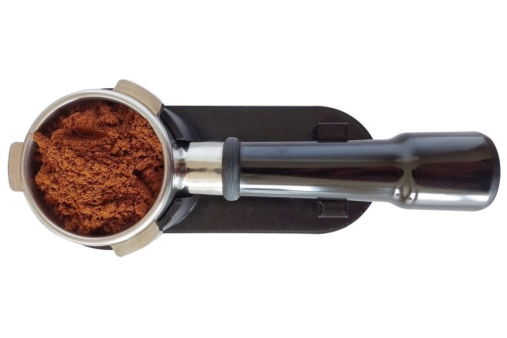 Portafilter on täysin tukematon tässä peukalointiasemassa, joten sinun ei tarvitse pitää sitä painettuna. Tietysti sitä voidaan käyttää myös vakaana telineenä jauhetun kahvin sisään lapioittaessa, jos et käytä myllyä ja kauhaa.