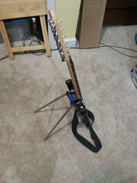 Teline tarjoaa käytännöllisen säilytysratkaisun, joka auttaa suojaamaan instrumenttia putoamiselta ja vaurioilta. Lisävakautta varten mukana on pieni pidike, joka voidaan kiinnittää huomaamattomasti kitaraan, mikä takaa entistä turvallisemman levon.
