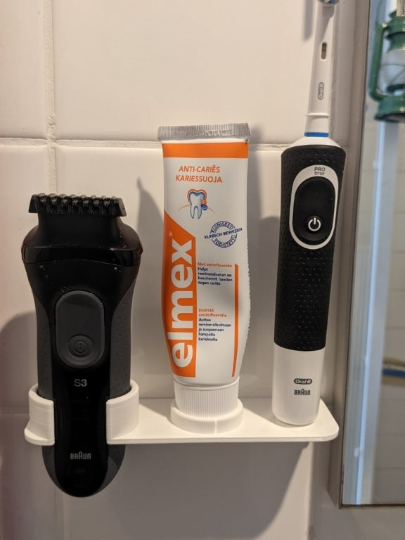 Pidike on räätälöity sopimaan suosittuihin malleihin, kuten Braun S3 3000s -parranajokoneisiin ja Elmex-hammasharjoihin, ja sen muotoilu mahdollistaa myös sen sopivuuden moniin muihin tavallisiin sähköhammasharjoihin ja niihin liittyviin hammasharjapäihin sekä erilaisiin parranajokonetyyppeihin. Kiinnittämällä tavarasi seinälle vähennät sotkua pesualtaalla ja edistät virtaviivaisempaa ja hygieenisempää kylpyhuoneympäristöä. Toimiva ratkaisu hyvin järjestettyyn kotiin.