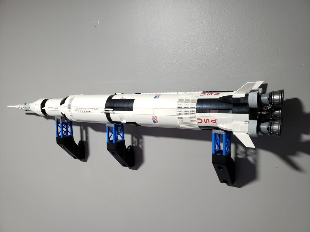 Seinään asennettava jalusta Lego Saturn V -mallille. Siinä on ominaisuuksia, joilla se pitää kiinni Legon akseleista, jotka yhdistävät mallin mukana tulevan sinisen jalustan. Täydellinen Lego Saturn V -mallin esittelyyn seinällä.