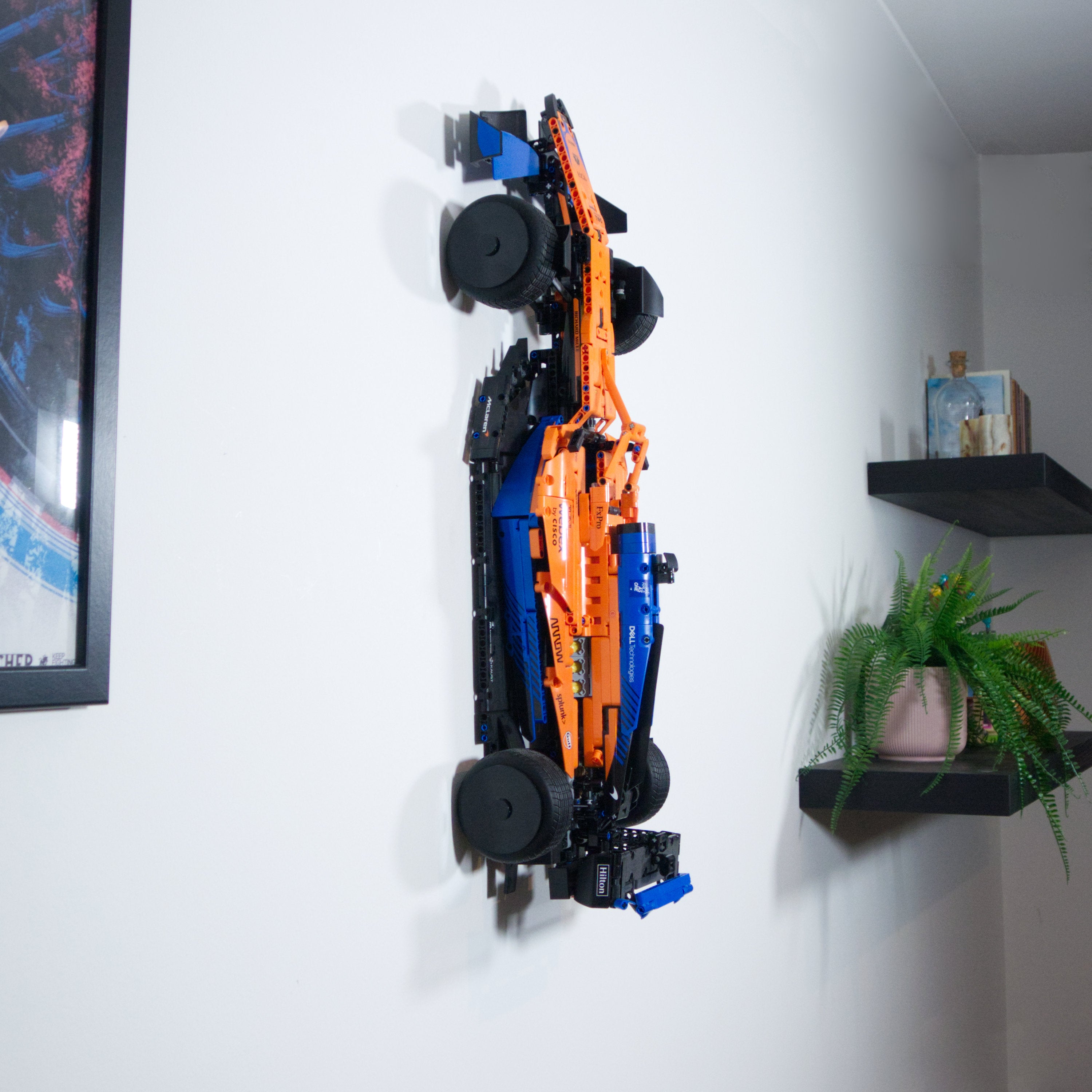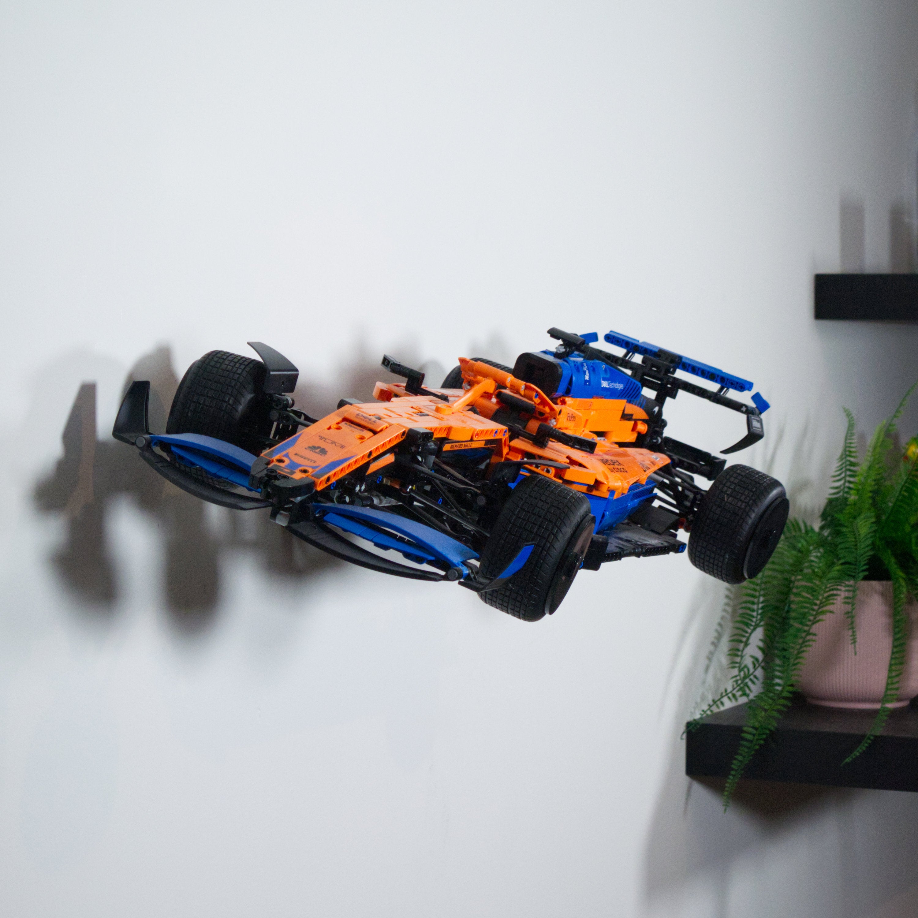 Tämä seinäkiinnike on suunniteltu erityisesti LEGO Technic McLaren Formula 1 -kilpa-autolle. Sen avulla malli voidaan esitellä joko vaaka- tai pystysuunnassa lähellä seinää. Kiinnike on rakennettu siten, että auton voi helposti ottaa alas ja asettaa takaisin tarvittaessa.