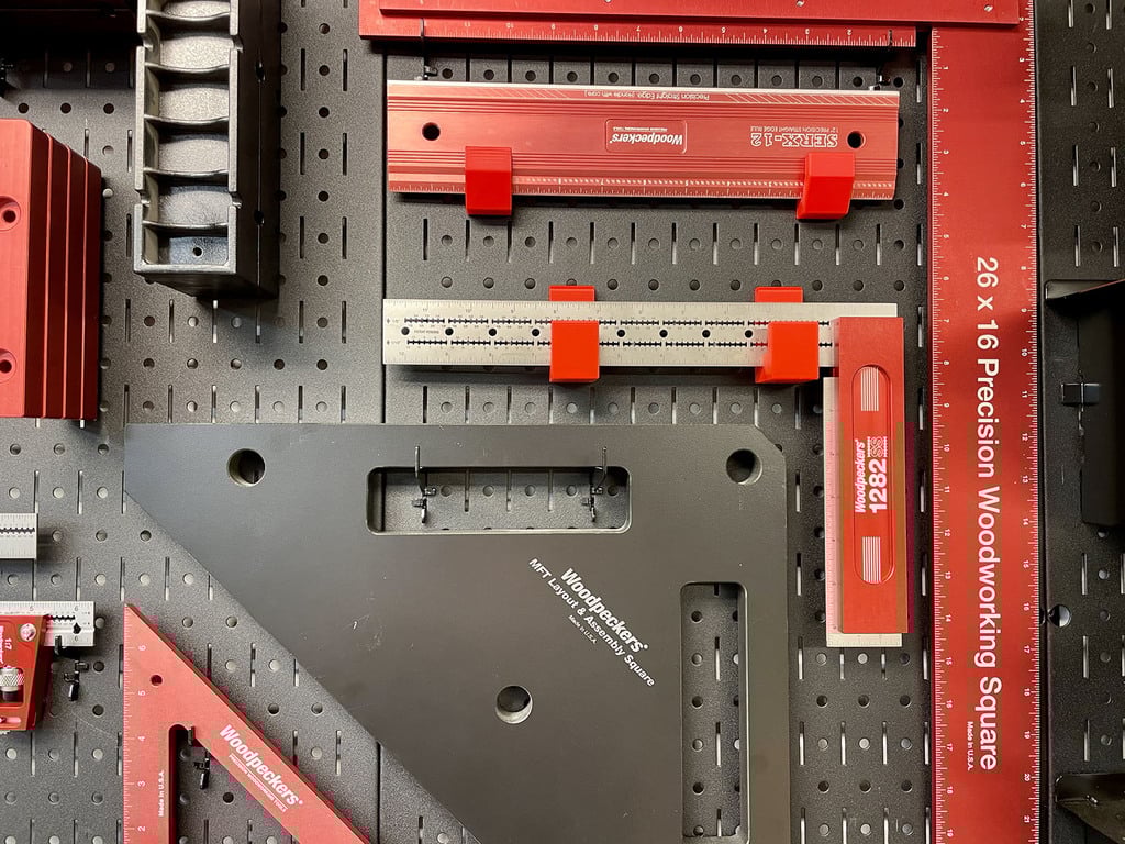 Tämä seinäteline on suunniteltu järjestämään tehokkaasti Woodpeckers Stainless Steel Square -työkalusi Wall Control -reikälevylle. Se varmistaa, että tarkkuustyökalusi säilytetään turvallisesti ja ovat helposti saatavilla, mikä edistää siistiä ja toimivaa työtilaa.