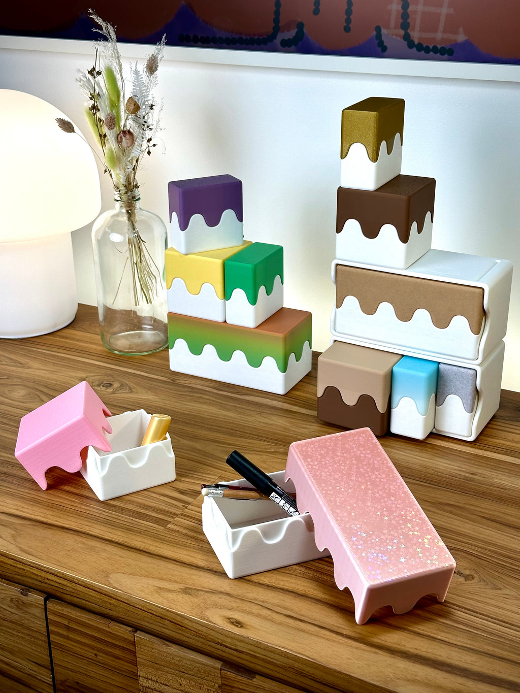 Söpöt pinottavat laatikot aaltomuotoisella muotoilulla