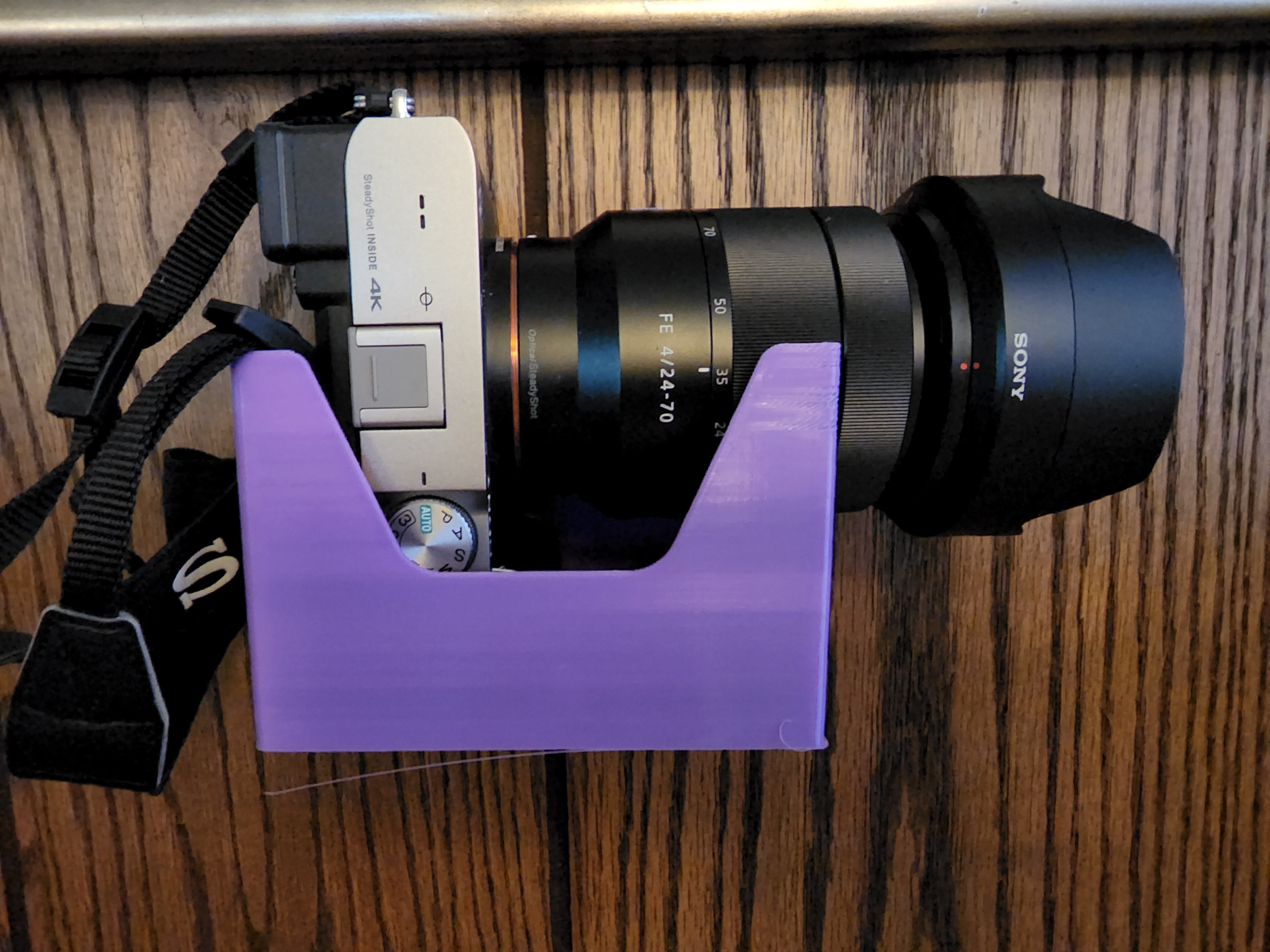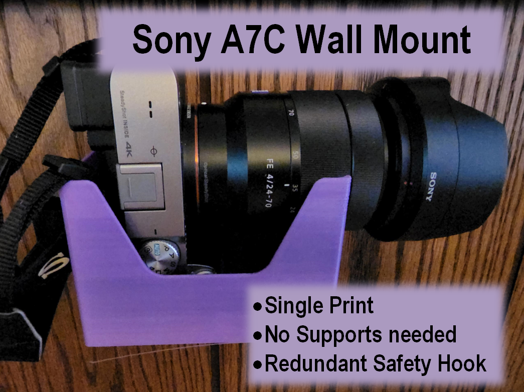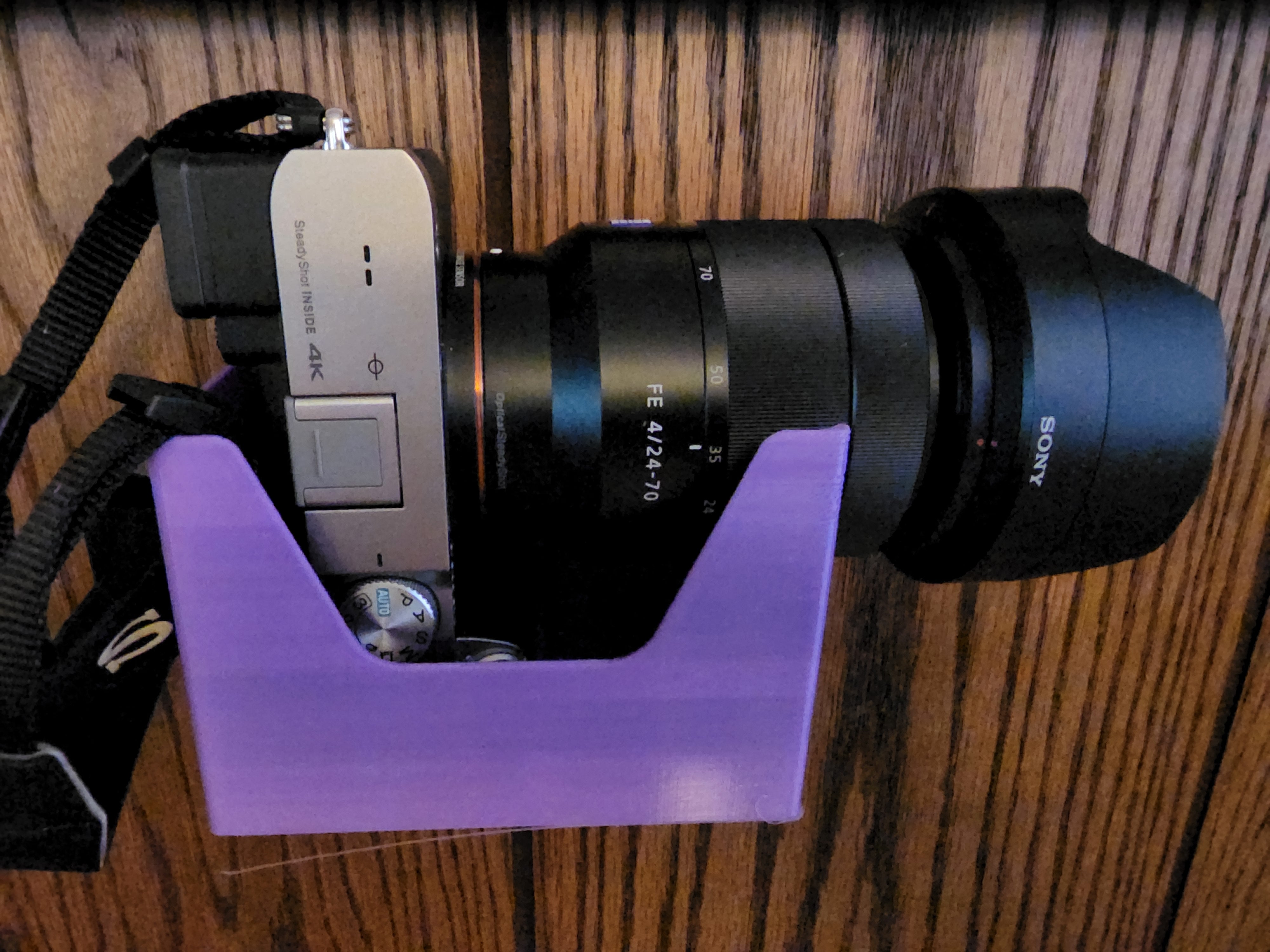 Tämä on yksinkertainen seinäkiinnike Sony A7C -kamerallesi (ja todennäköisesti muillekin malleille). Se auttaa pitämään kameran poissa pienten lasten ulottuvilta ja tekee siitä kätevästi saatavilla olevan spontaaneja kuvaustilaisuuksia varten.