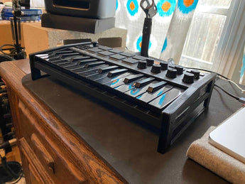 Tämä on teline AKAI MPK Mini -näppäimistölle, joka nostaa näppäimistöä noin 30 mm pöydästä. Teline parantaa ergonomiaa ja voi auttaa vähentämään ranteiden ja käsien kipua pitkäkestoisen pelaamisen aikana. Hinta on kahden pidikkeen sarjalle (2 kpl).