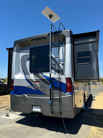 Tämä kiinnitysjärjestelmä on kehitetty kiinnittämään StarLink Gen3 Dishy -paneeli turvallisesti matkailuautosi takaosaan asennettuun tikkaaseen. Sarja koostuu kahdesta tukevasta kiinnikkeestä ja sovittimesta, jotka on suunniteltu toimimaan yhdessä StarLink Pipe Adapterin ja tavallisen teleskooppisen jatkotangon kanssa (molemmat myydään erikseen).