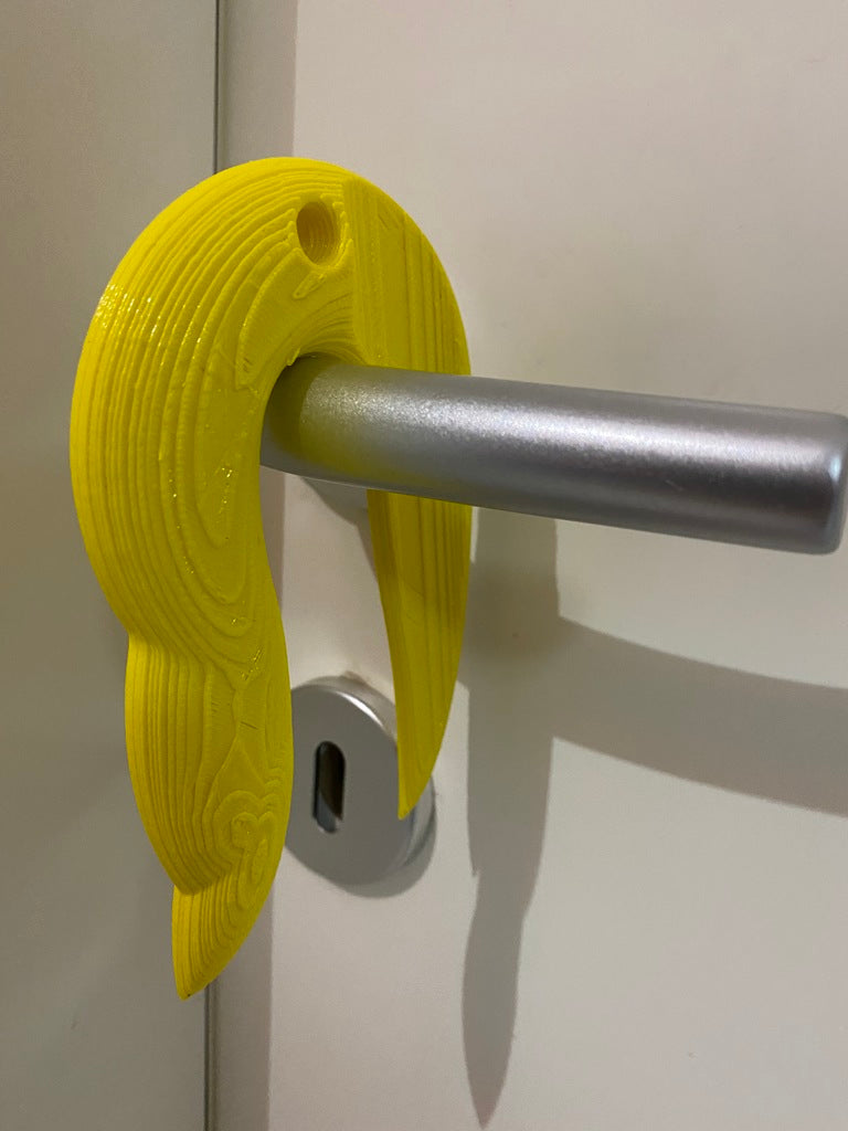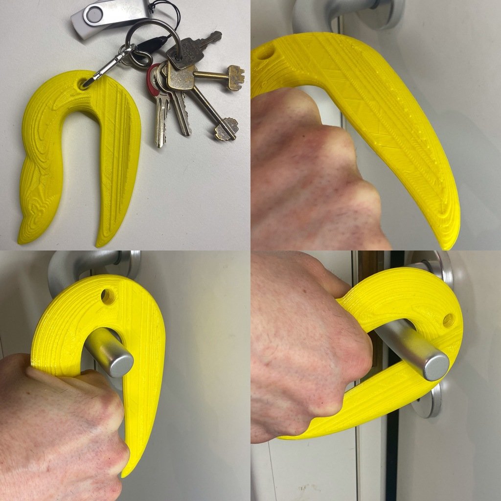 Tämä on Toucan saw grabber, avainriipus, jolla voit avata ovet koskettamatta kahvoja. Se sopii sekä oikea- että vasenkätisille käyttäjille. Katso, miten sitä käytetään näillä videoilla: