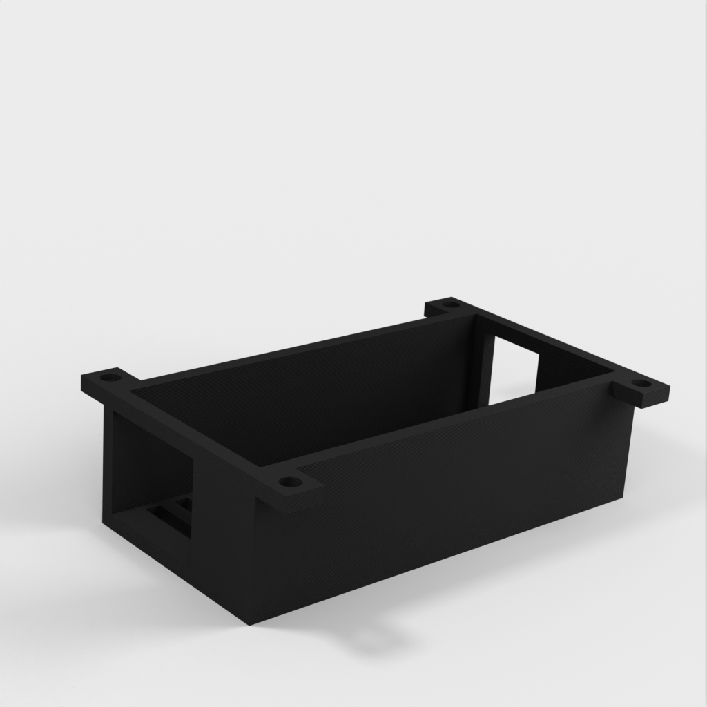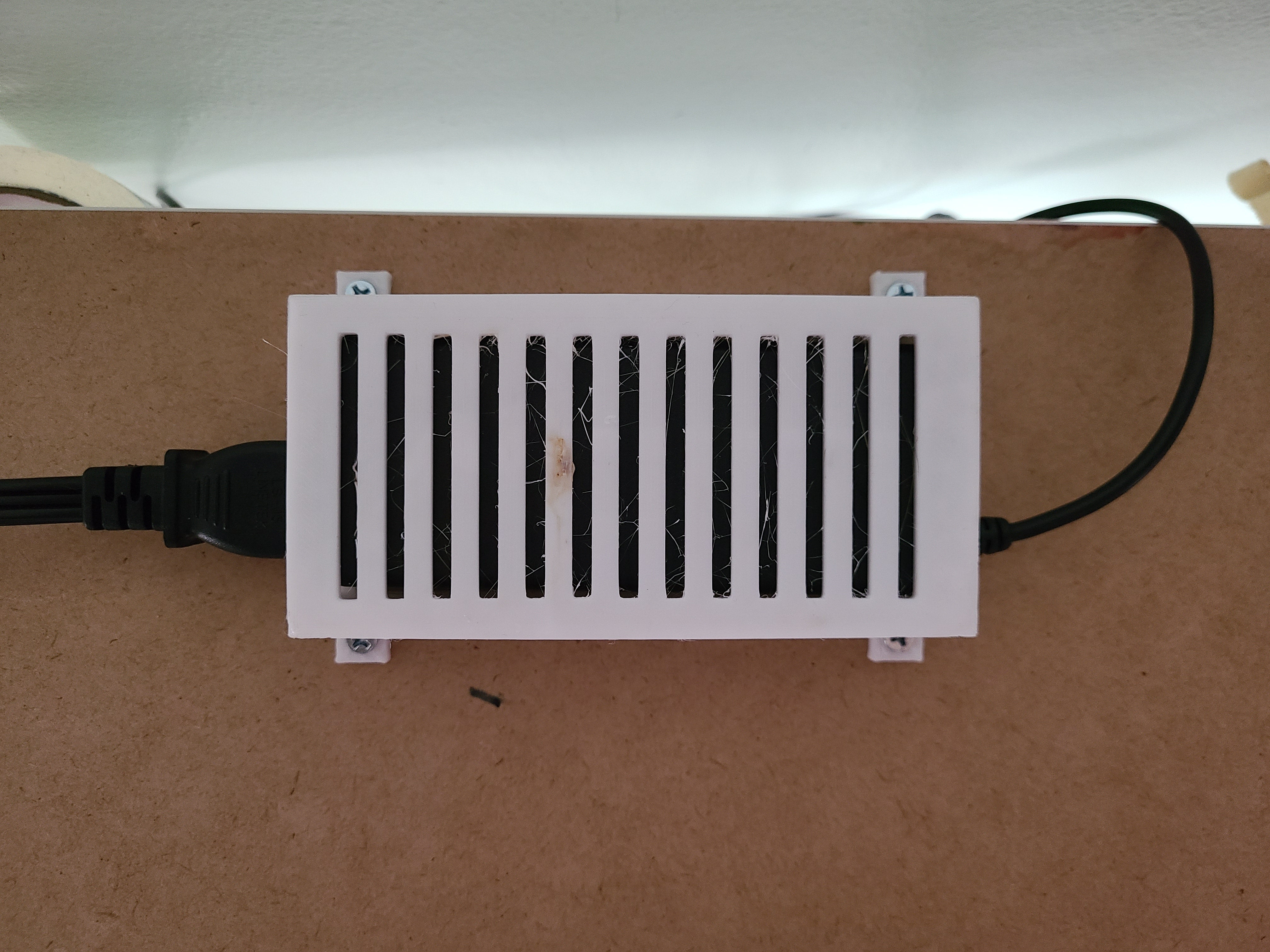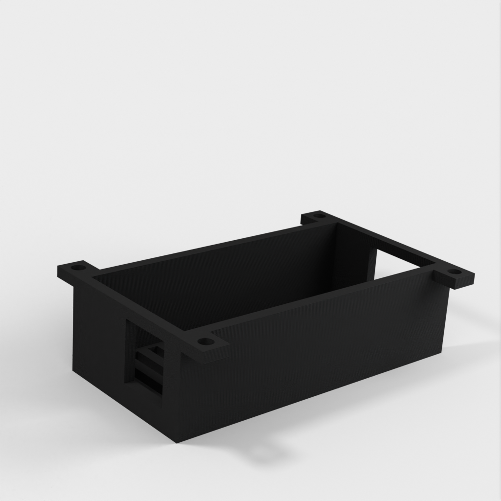 Työpöydän alla oleva kiinnike kannettavan tietokoneen virtalähteelle