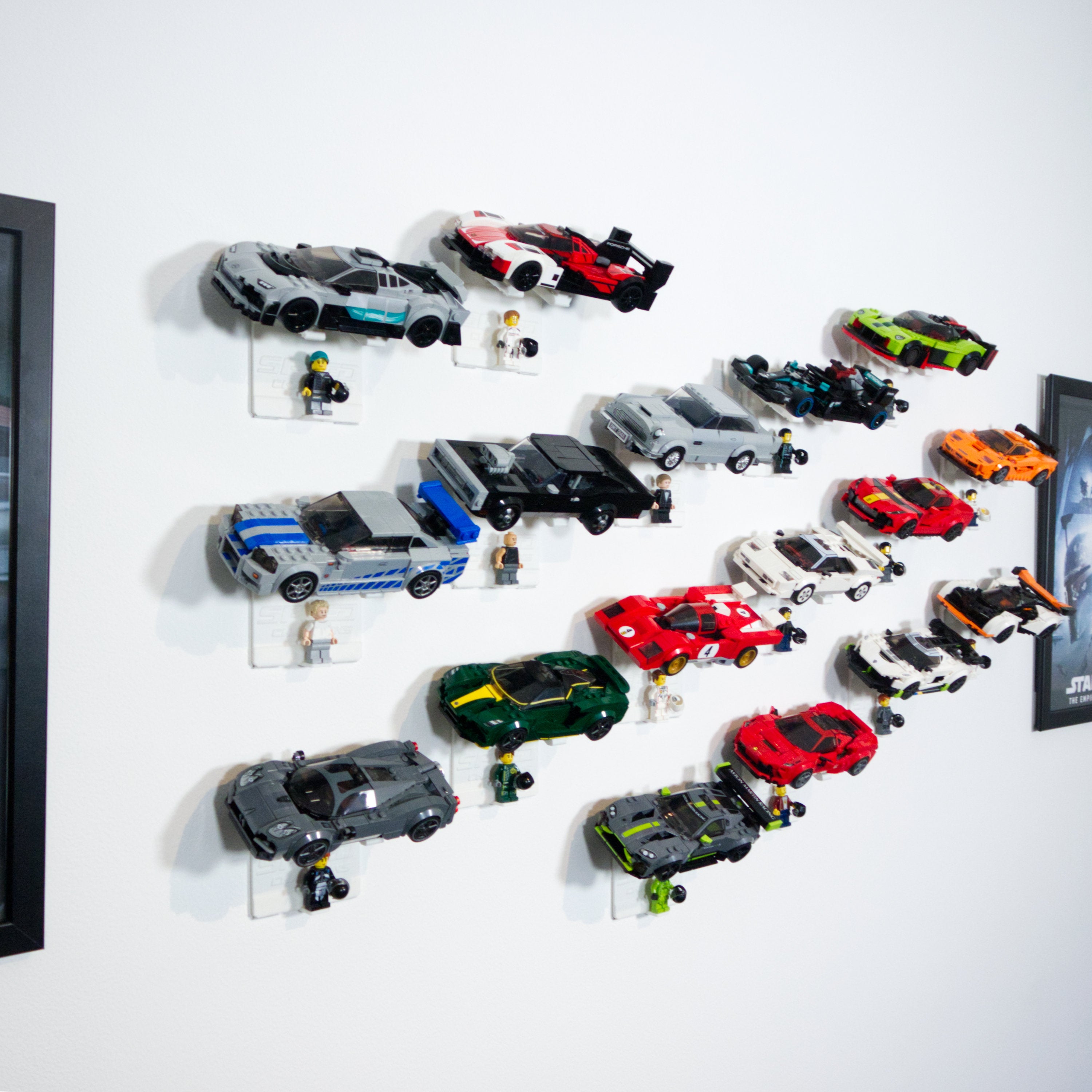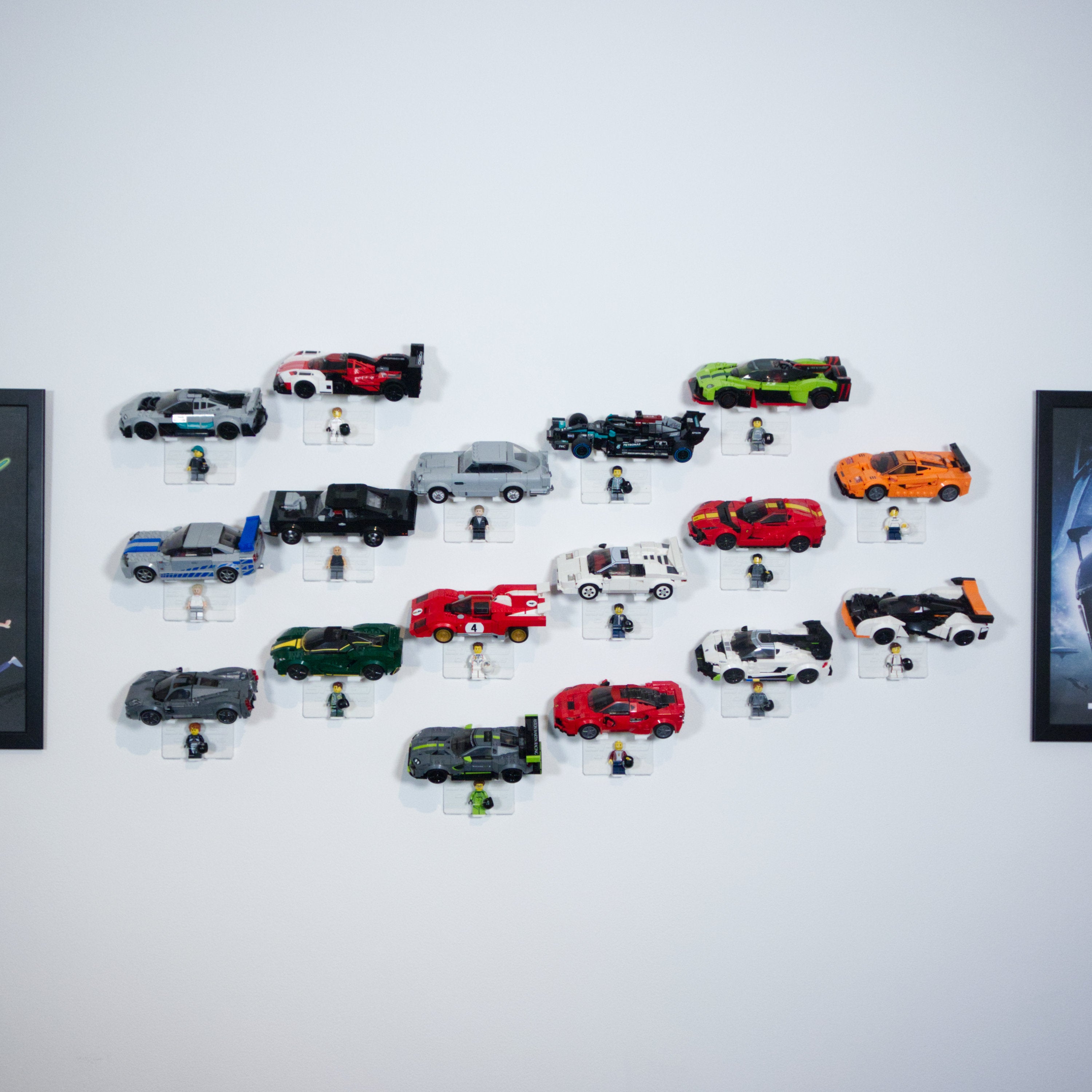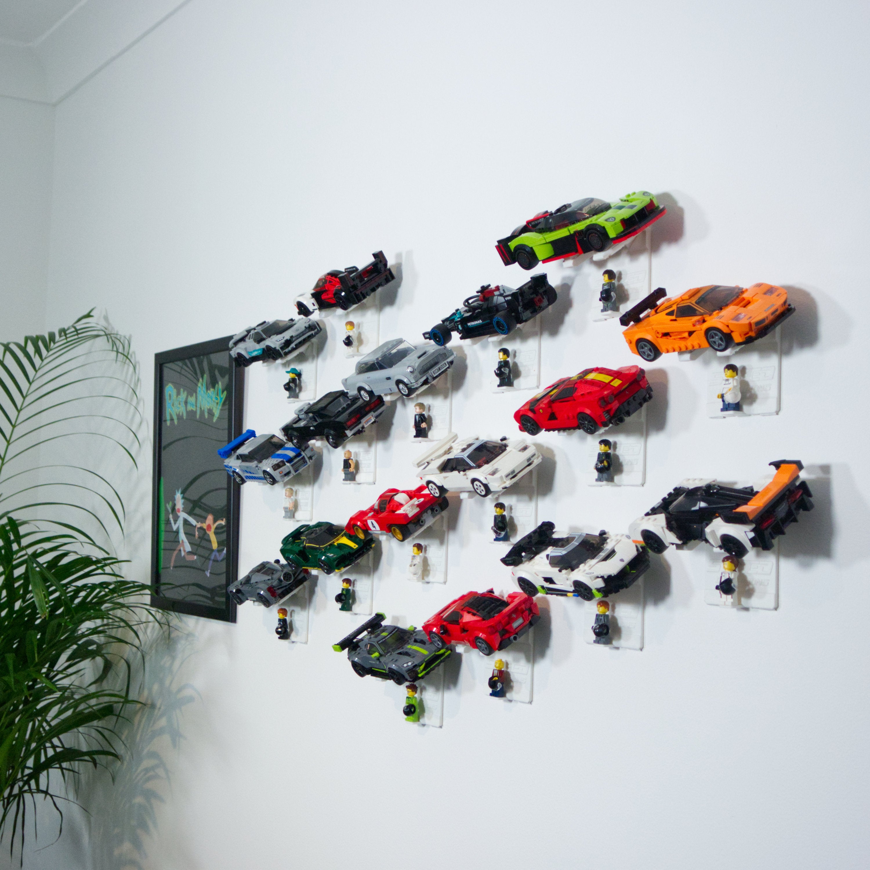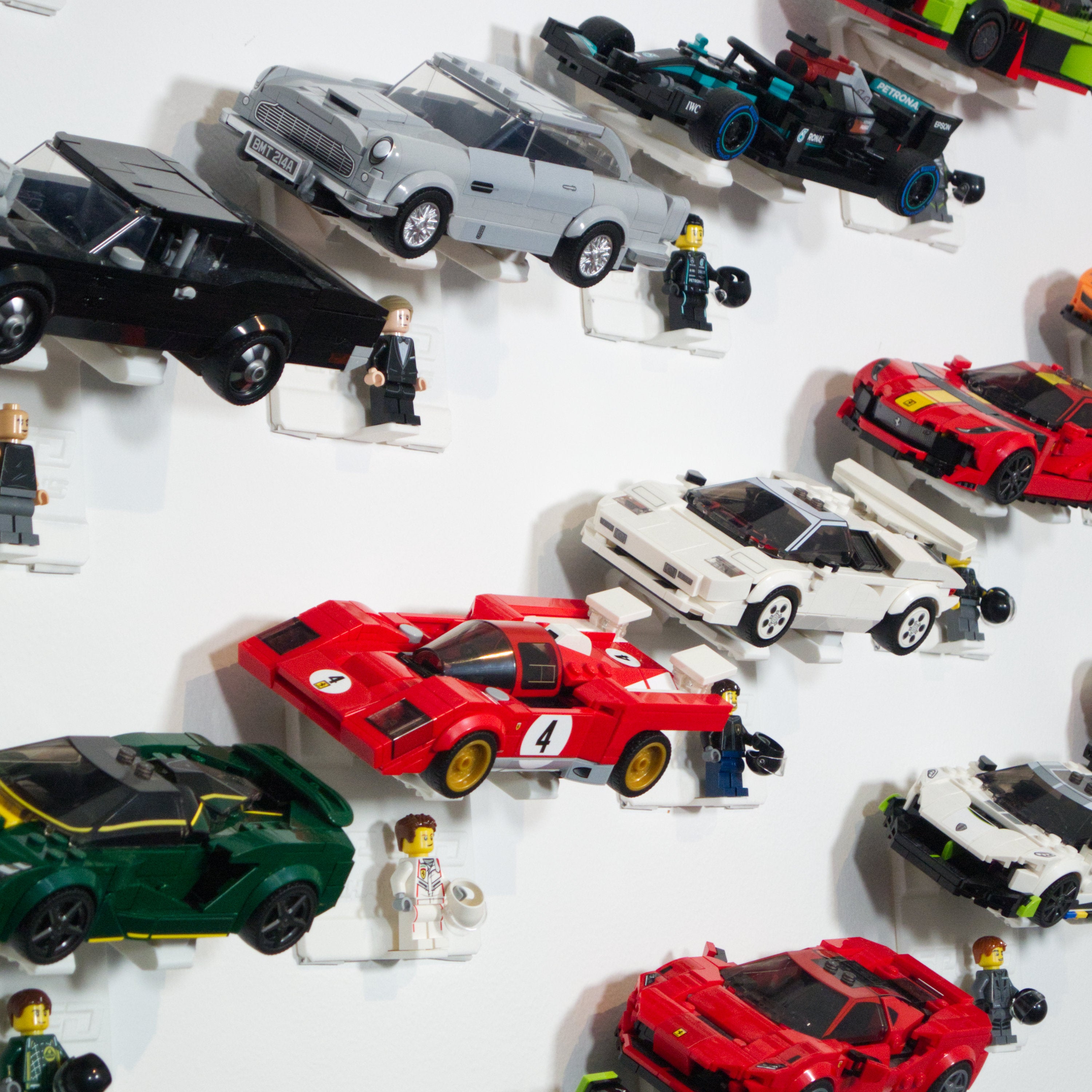 Tämä seinäteline mahdollistaa LEGO Speed Champions -autojesi esittelyn seinällä. Järjestelmä sisältää erilaisia sovittimia, jotta se sopii lähes kaikkiin malleihin, sekä uusiin että vanhoihin. Auto pysyy tukevasti paikallaan, ja mukana tulee hylly, jotta minihahmo voi seistä vieressä. Asennetaan ruuveilla tai teipillä.